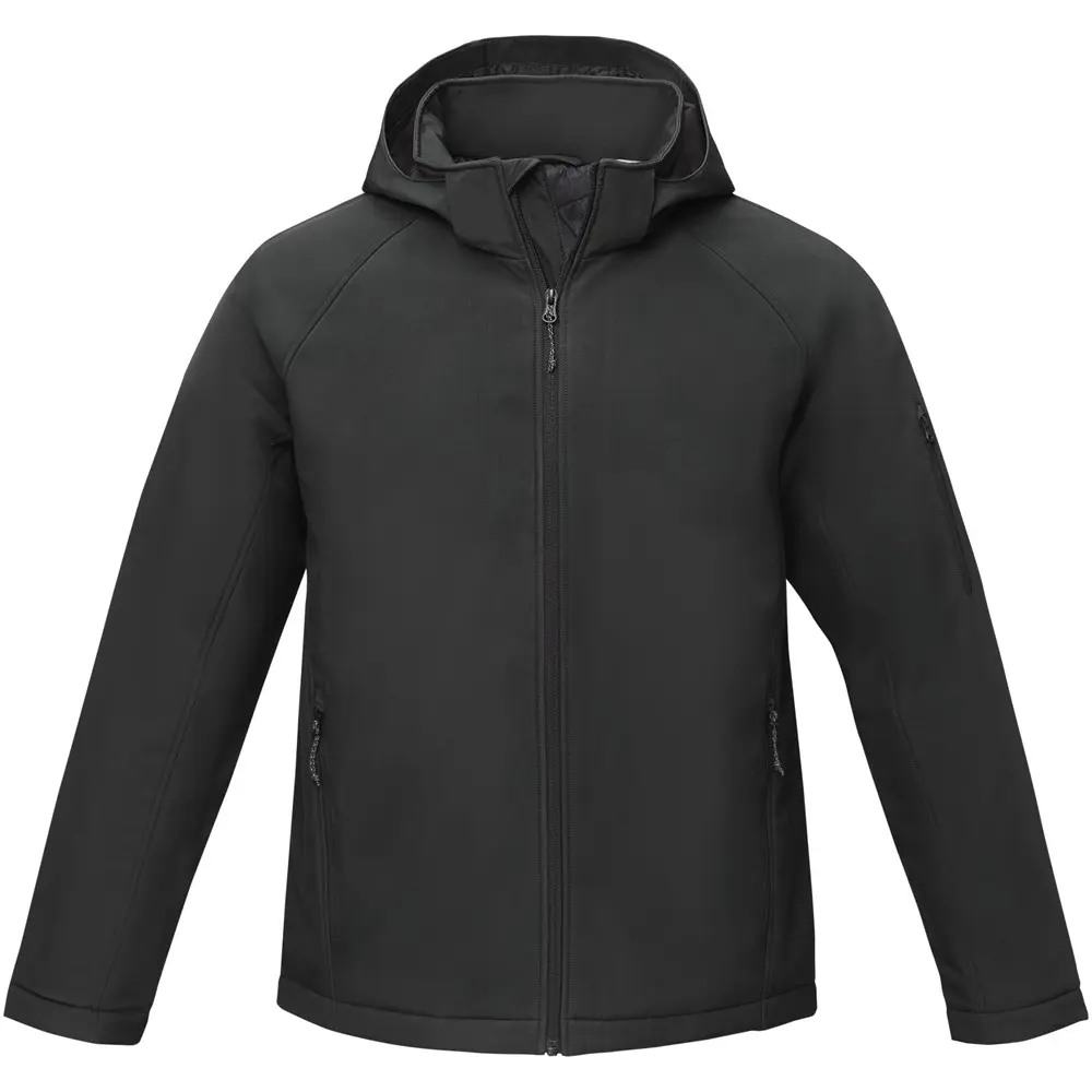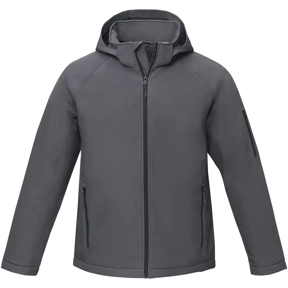 Elevate your brand's visibility with the Notus men's padded softshell jacket, ideal for promotional giveaways and corporate events. This versatile outerwear combines modern style with practical features, including a detachable hood for customizable appeal, tagless comfort via tearaway labels, and weather-resistant elements like a contrast zipper, storm flap, and chin guard. Secure storage comes from zippered front and sleeve pockets, plus an inner mesh pocket for essentials.