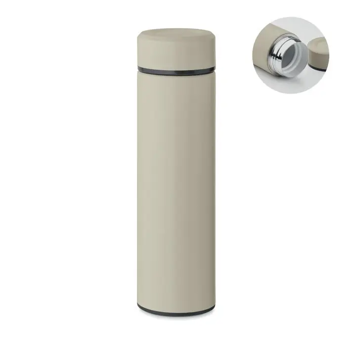 Elevate your brand with the NUNAVUT Double Wall Bottle, a 420 ml eco-friendly essential crafted from 90% recycled stainless steel for sustainable promotion. Its vacuum insulation keeps drinks hot or cold for hours, while the ceramic inner lining prevents flavor transfer and ensures a premium feel.