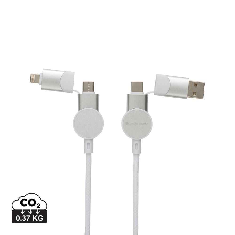 Elevate your brand visibility with the customizable Oakland 6-in-1 fast charging 45W cable, an ideal promotional giveaway for marketing campaigns and events. Crafted from 100% RCS-certified recycled TPE plastic and PET materials, it showcases your commitment to sustainability while delivering versatile, high-performance charging.
