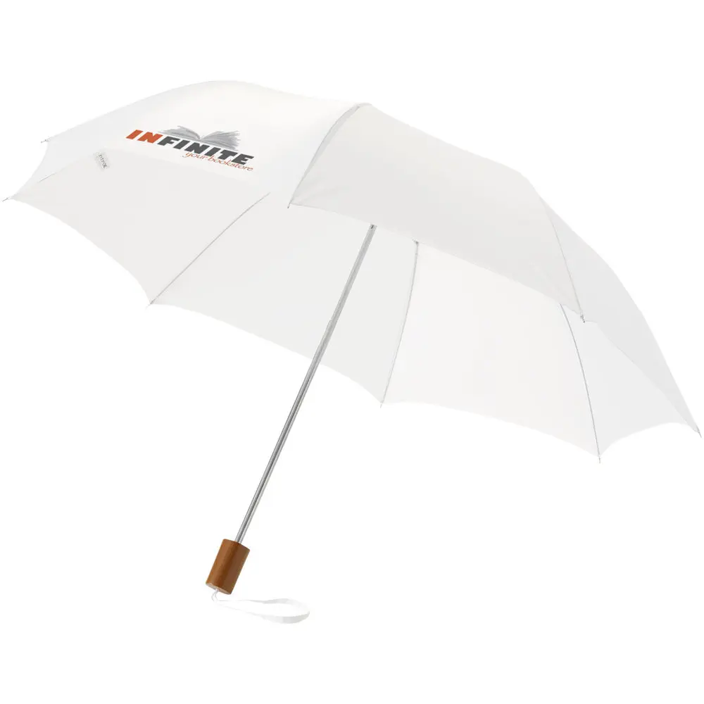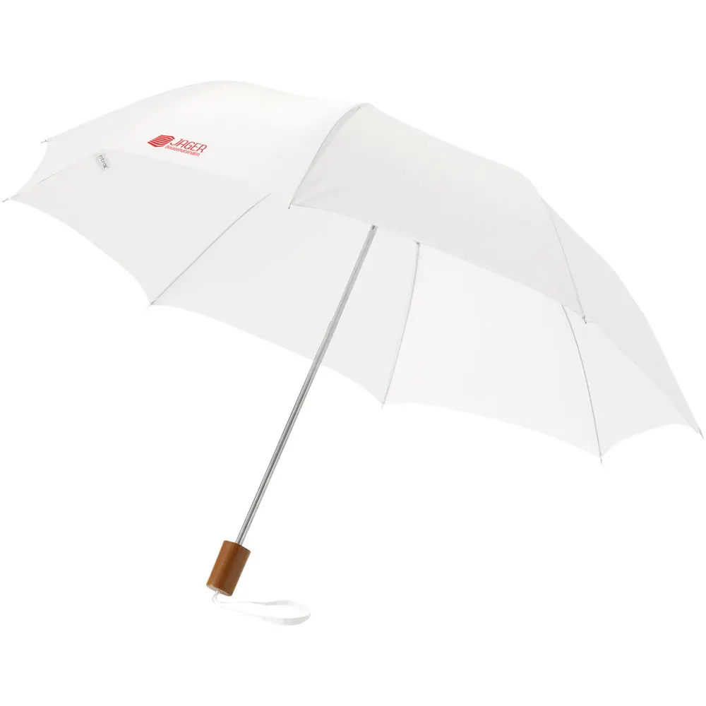 The Oho 20" foldable umbrella is the perfect promotional giveaway for marketing teams and event organizers. Its compact 37.5 x Ø 90 cm design folds neatly into an individual gift pouch, making it easy to store and distribute at events or as branded client gifts. Crafted from durable polyester with a sturdy metal frame and lightweight handle, it offers reliable protection while ensuring comfortable use.