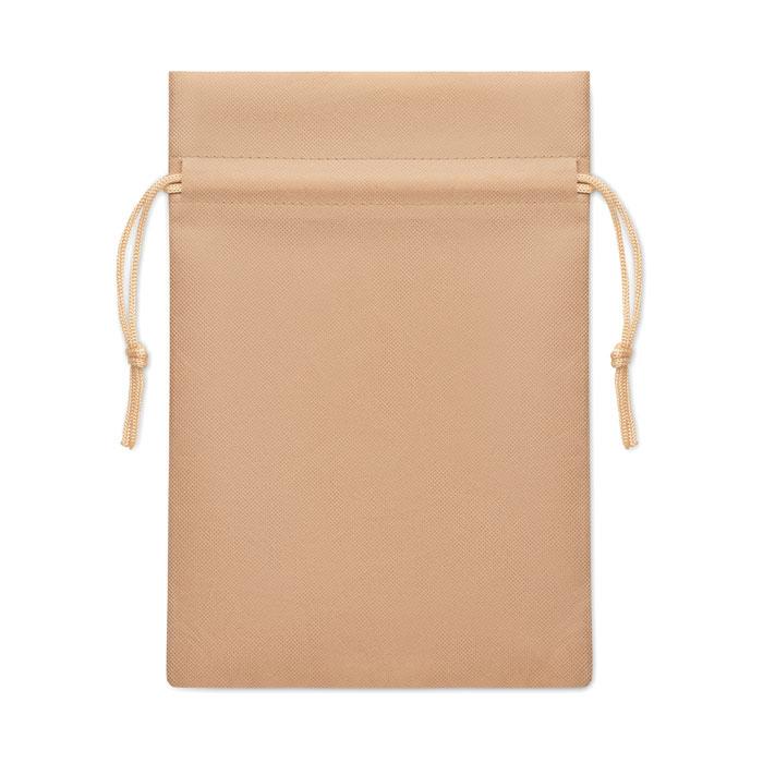 This lightweight, reusable bag features convenient drawstrings for easy carrying, making it ideal for holding small gifts, samples, or branded merchandise at events or client giveaways. Personalize it with your company logo to enhance brand visibility and leave a lasting impression on recipients.