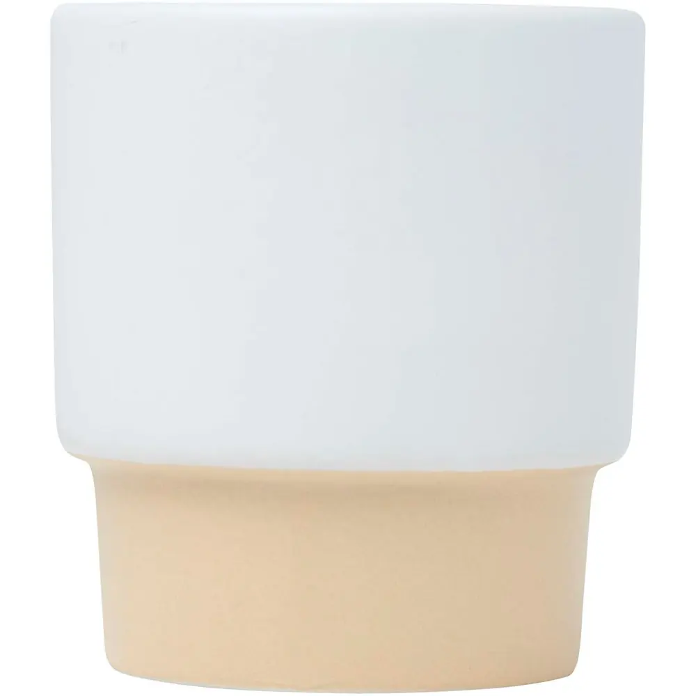 Crafted from high-quality ceramic with a clay bottom for added stability, these cups withstand daily use while maintaining an elegant matte finish. Packaged in individual recycled cardboard boxes, they align with sustainable branding initiatives, appealing to environmentally conscious partners. The recycled elements demonstrate your commitment to green practices without compromising quality.