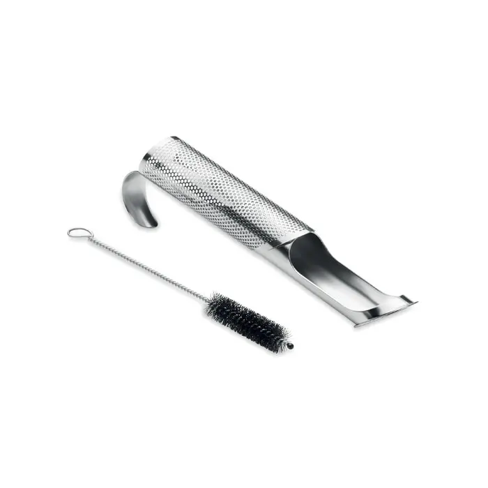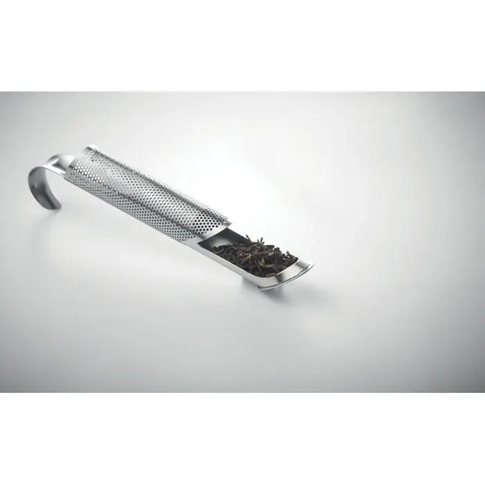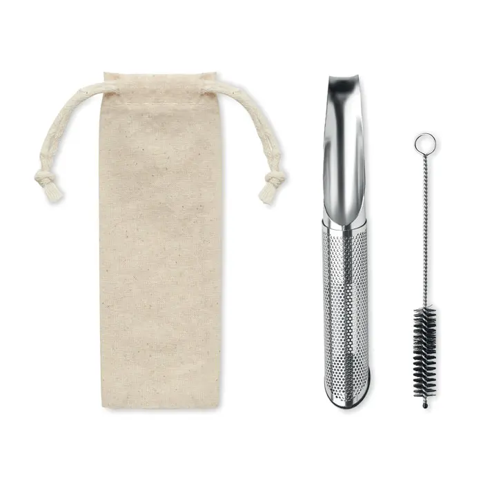 Elevate your brand's visibility with the OOLONG Stainless Steel Tea Infuser, a premium, reusable essential for tea enthusiasts. Crafted from durable stainless steel, this pipe-style infuser set includes a fine-mesh filter with a curved hook that rests securely over cup or mug edges, preventing spills and ensuring easy retrieval. It comes complete with a compact cleaner brush for effortless maintenance and a convenient cotton pouch for storage or gifting.