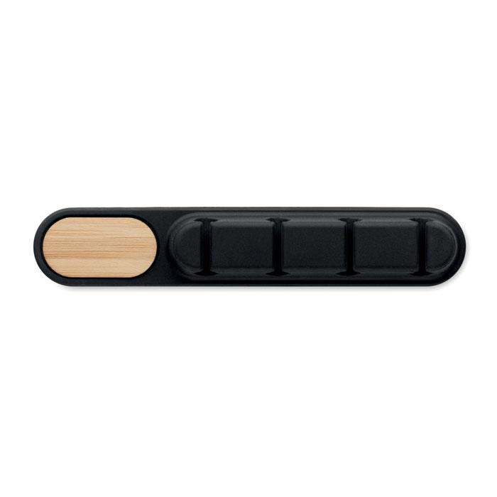 Elevate your brand visibility with our personalised silicone cable organiser, featuring a premium natural bamboo accent for an eco-friendly touch. This compact oval design effortlessly keeps cables tidy and secure, making it the perfect promotional giveaway for events, trade shows, or client appreciation gifts.