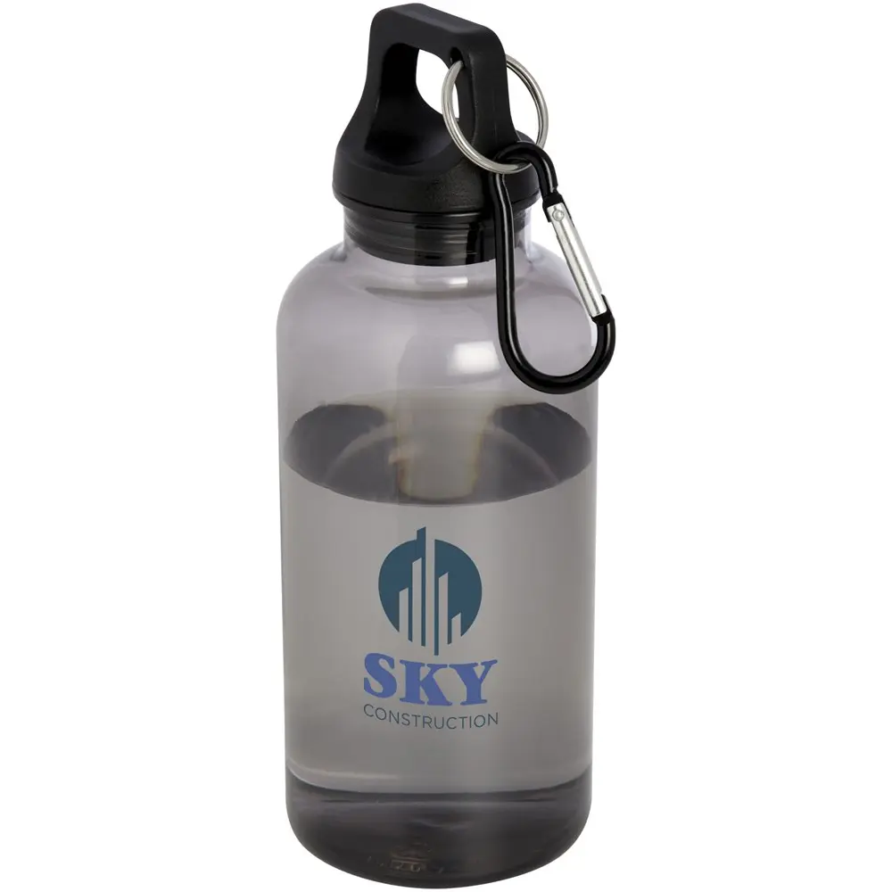 Elevate your brand with the Oregon 400 ml bottle featuring a carabiner, crafted from 100% recycled PET plastic for an eco-friendly promotional giveaway. This lightweight, single-walled design holds 400 ml, perfect for keeping teams hydrated during events, workouts, or office days. The twist-on lid ensures spill-free use, while the attached carabiner clips securely to bags for easy portability—ideal for on-the-go marketing.