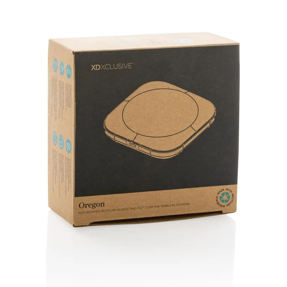 Elevate your brand with the Oregon Cork 10W Wireless Charger, a sustainable promo gift perfect for marketing campaigns and events. Crafted from FSC® 100% cork and RCS-certified recycled ABS (33% total recycled content), it ensures an eco-conscious supply chain while offering a premium, elegant feel that impresses recipients.