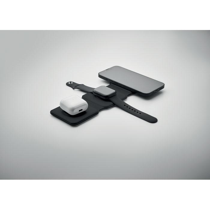 Crafted from durable ABS material, it offers three powerful 15W wireless charging spots, supporting simultaneous charging of smartphones, earbuds, and smartwatches—keeping recipients powered up and your brand top-of-mind.