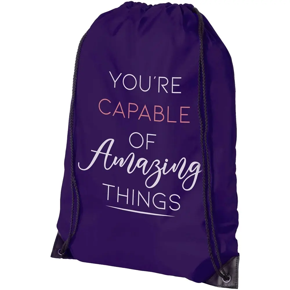 Elevate your promotional efforts with the Oriole premium drawstring bag 5L, a versatile choice for marketing professionals and event organizers. This lightweight 210D polyester bag measures 33 x 44 cm, providing ample space to customize with your company logo or messaging for maximum brand visibility.