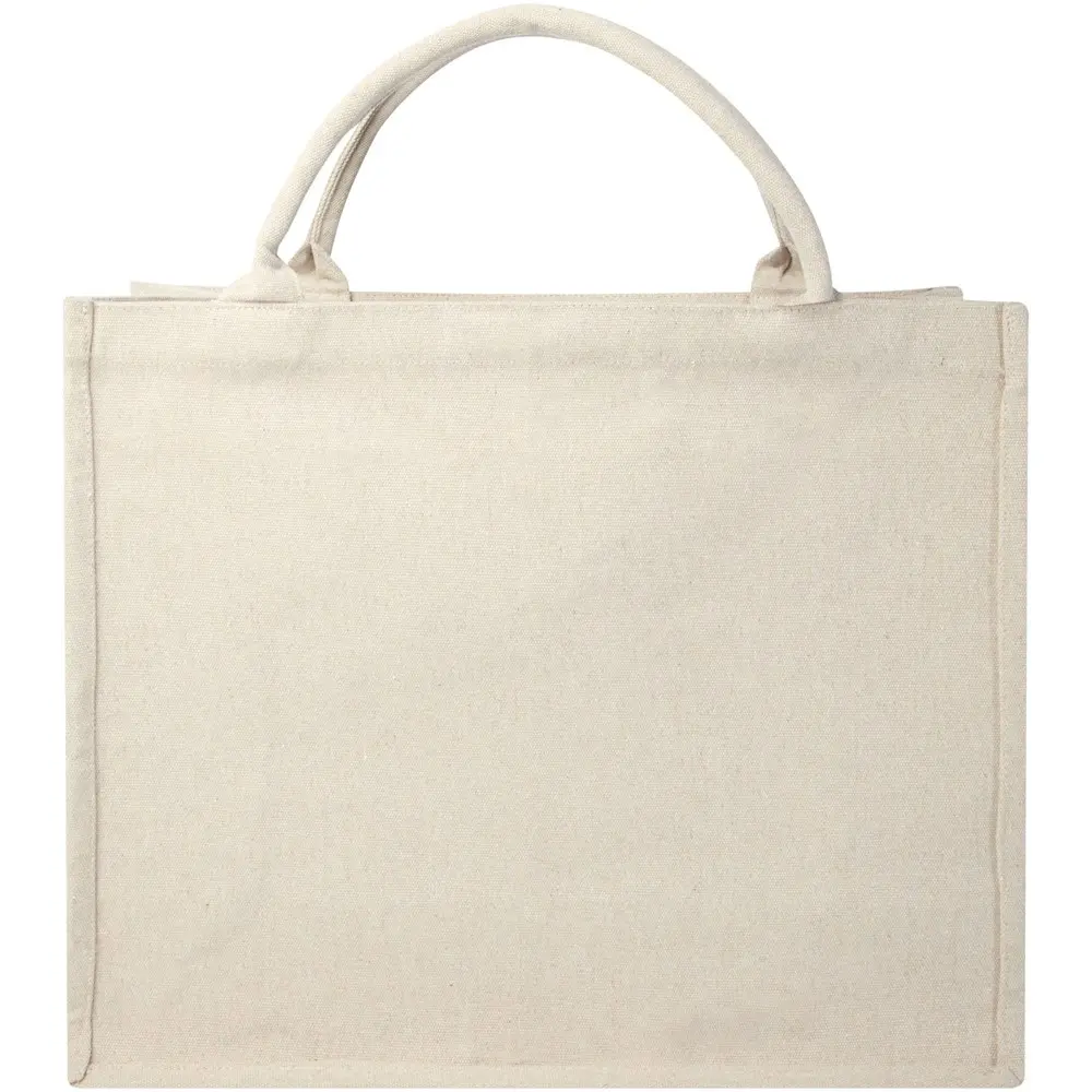 Elevate your brand's eco-conscious image with the Page 500 g/m² recycled book tote bag, an ideal promotional giveaway for marketing campaigns and events. Crafted from 70% recycled cotton and 30% recycled polyester (500 g/m²), this spacious 42 x 35 x 18 cm tote offers sturdy short handles for comfortable all-day carrying, perfect for holding books, groceries, or daily essentials on trips to the library or store.