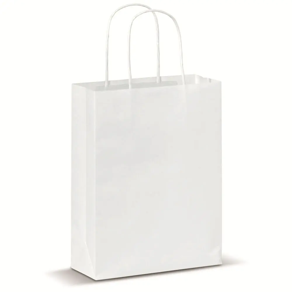 Discover our versatile kraft paper bags featuring sturdy twisted paper handles. Crafted from 90g/m² material in a compact 18x8x22cm size, these bags offer a reliable solution for carrying essentials at events or promotions.