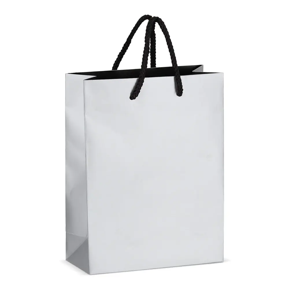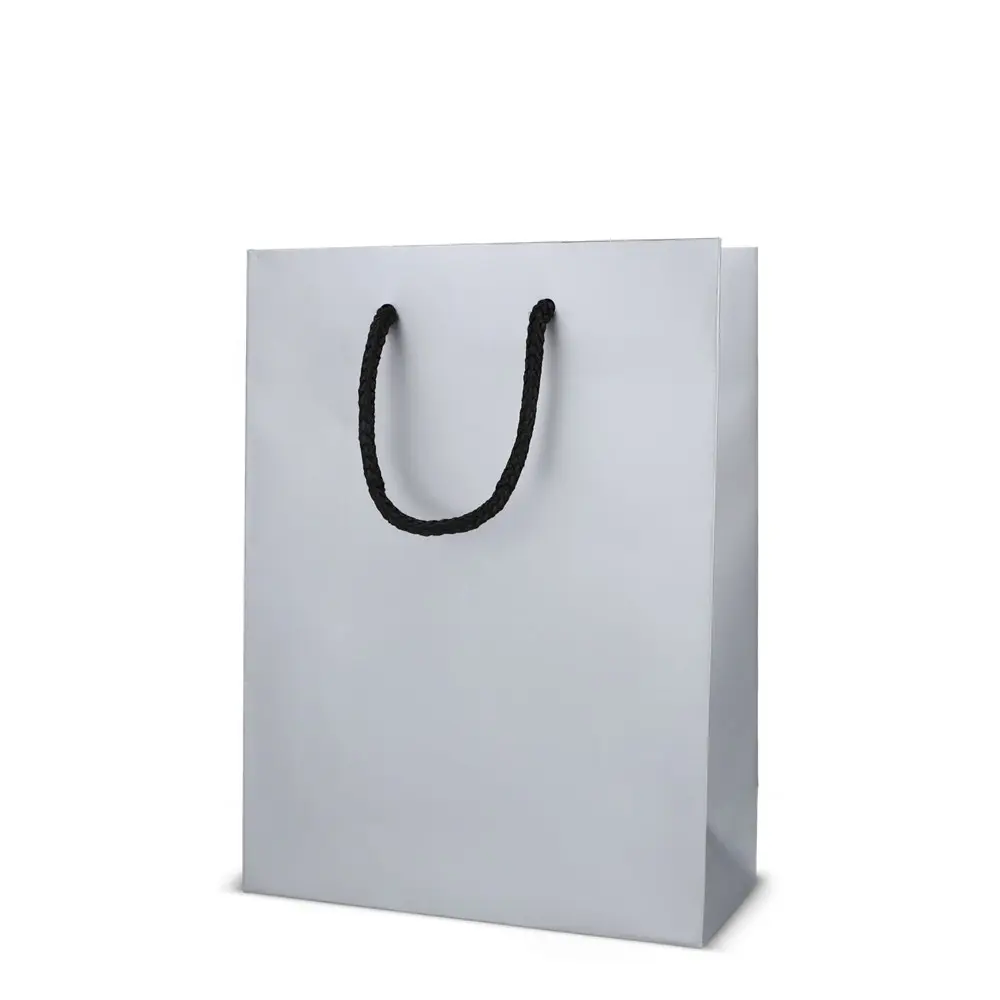 Elevate your brand's presentation with this sophisticated paper gift bag, crafted from high-quality 200g/m² paper. Measuring 18 x 8 x 24cm, it offers ample space for gifts while maintaining a premium feel. Ideal for businesses seeking customizable packaging solutions.