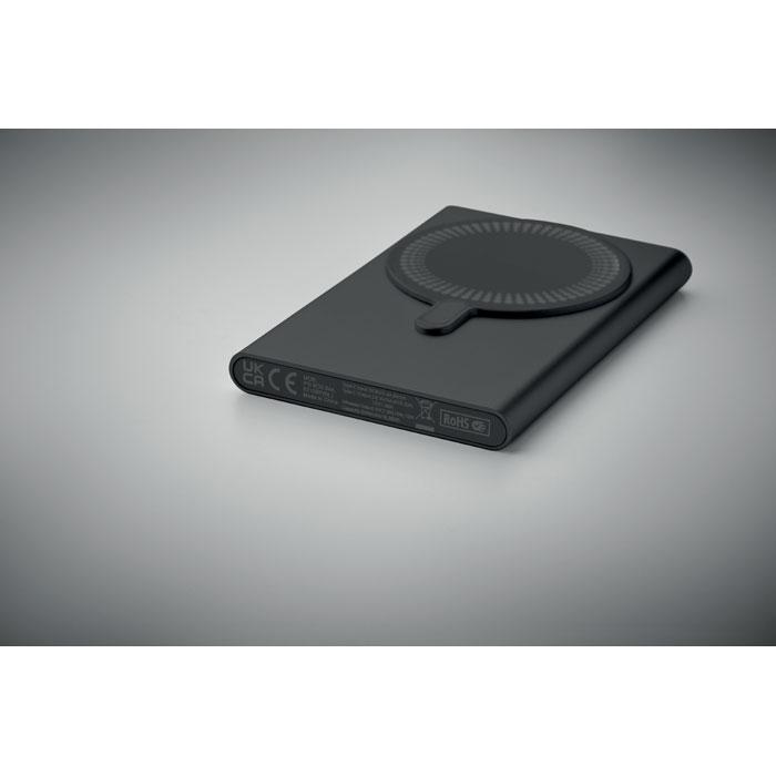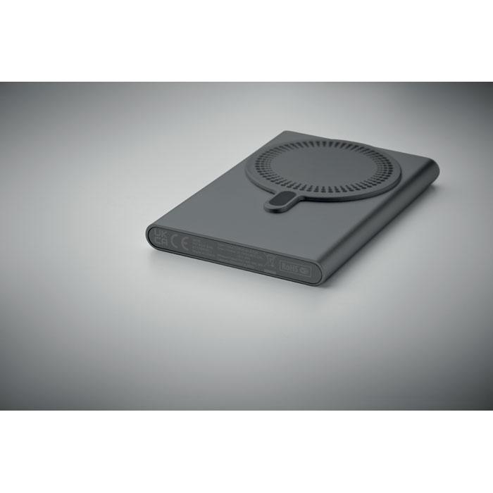 Elevate your brand with this versatile magnetic wireless charger and power bank combo, perfect for promotional giveaways at events or client appreciation gifts. Crafted from recycled aluminum for an eco-friendly touch, it combines a 15W magnetic wireless charger with a reliable 5000 mAh power bank. Ideal for marketing professionals and event organizers seeking customizable items with logo printing to boost visibility.