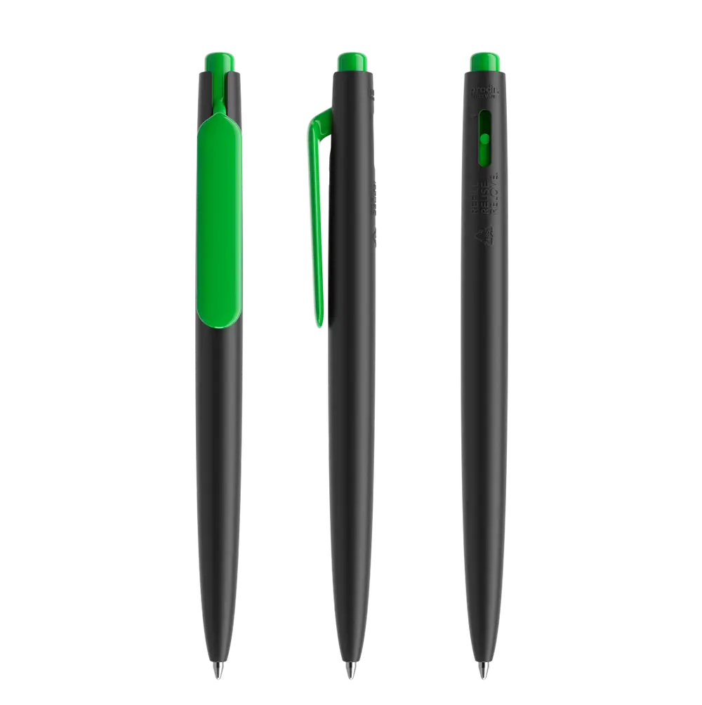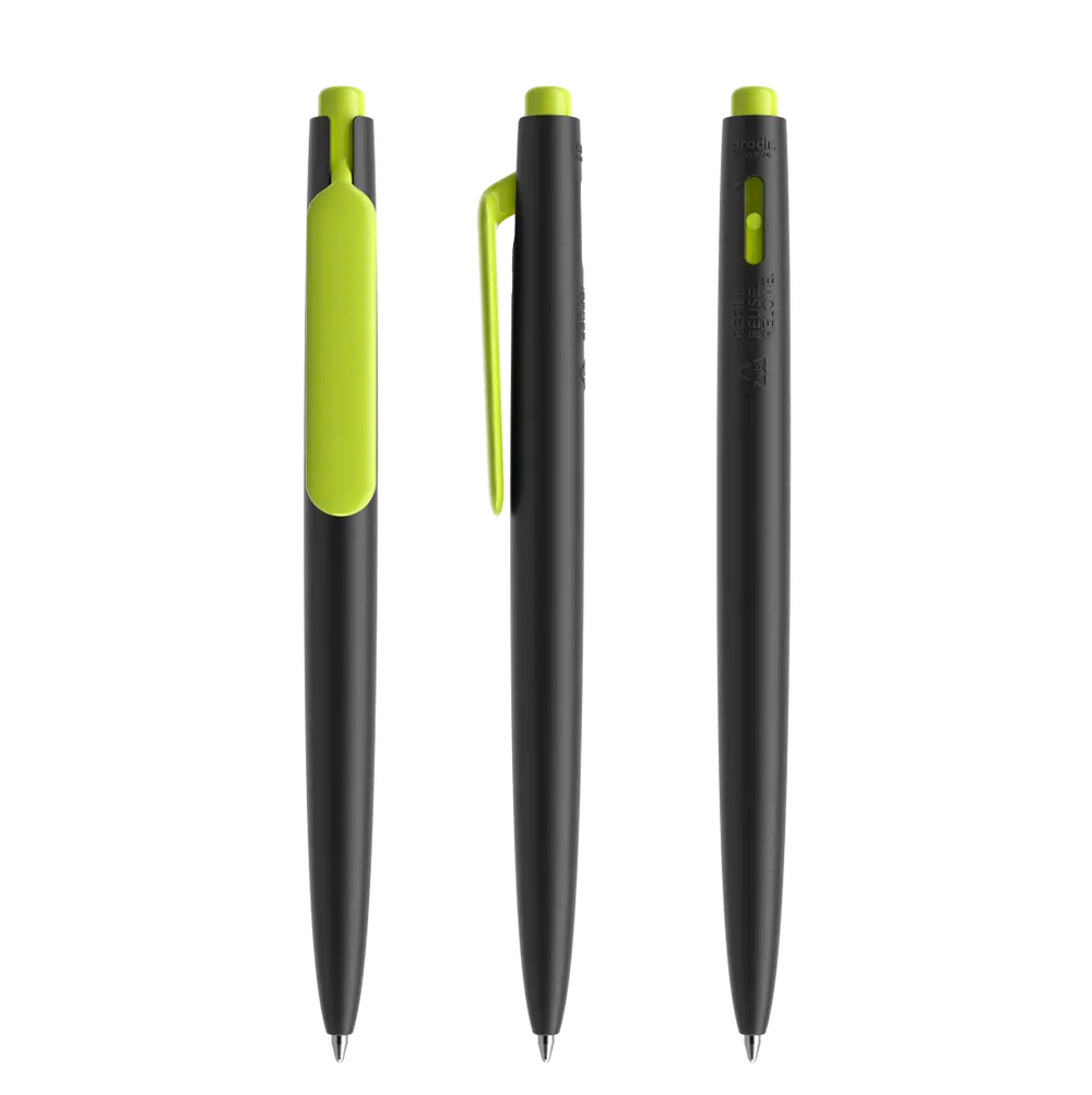 The Pen Prodir DS11 matt is an eco-friendly promotional pen crafted from 100% recycled plastic (ABS) body with metal accents, making it a sustainable choice for businesses committed to green initiatives. Its versatile design features two printing surfaces—the clip and casing—allowing for custom logo imprinting, with the clip supporting up to six colors for vibrant, eye-catching personalization.
