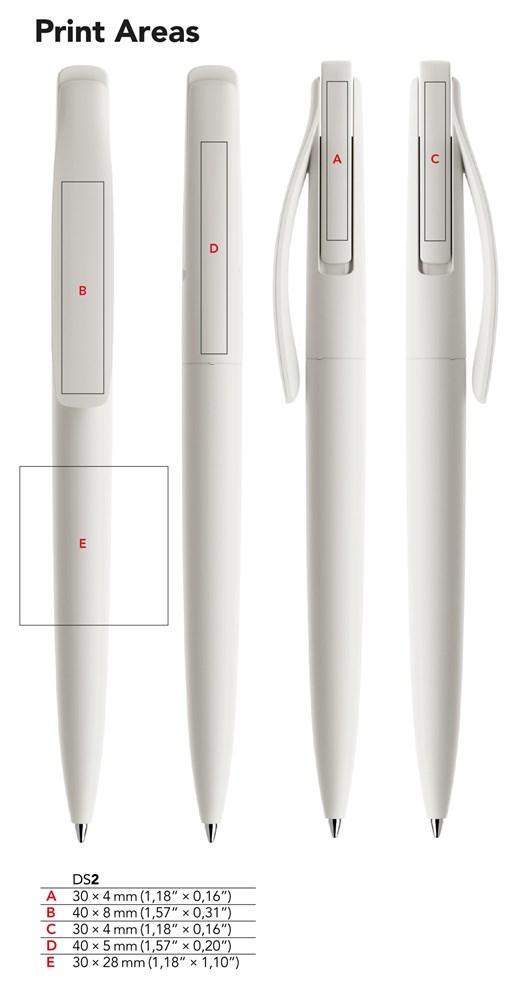 Elevate your brand with the Prodir DS2 pen, featuring a distinctive elongated push button for a unique contour that stands out. Prodir's signature thick component walls deliver intensely vivid logo prints and a satisfying, balanced weight for a premium feel in hand.