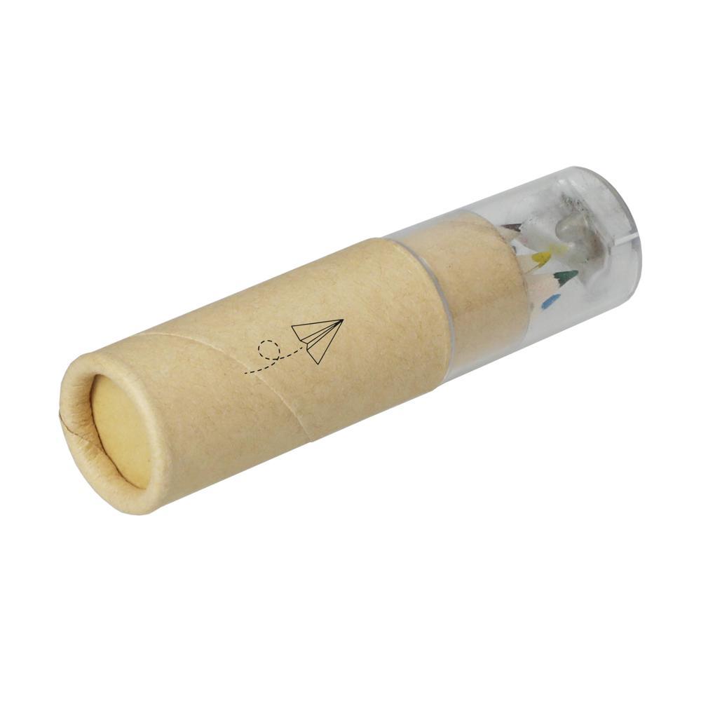 Elevate your promotional giveaways with this compact 2-in-1 pencil set, featuring six short, unvarnished wooden pencils stored in a sturdy cardboard cylinder (7 cm diameter) with a transparent plastic lid. The built-in sharpener ensures pencils stay sharp on the go, delivering precise writing and drawing with a natural feel and smooth performance.