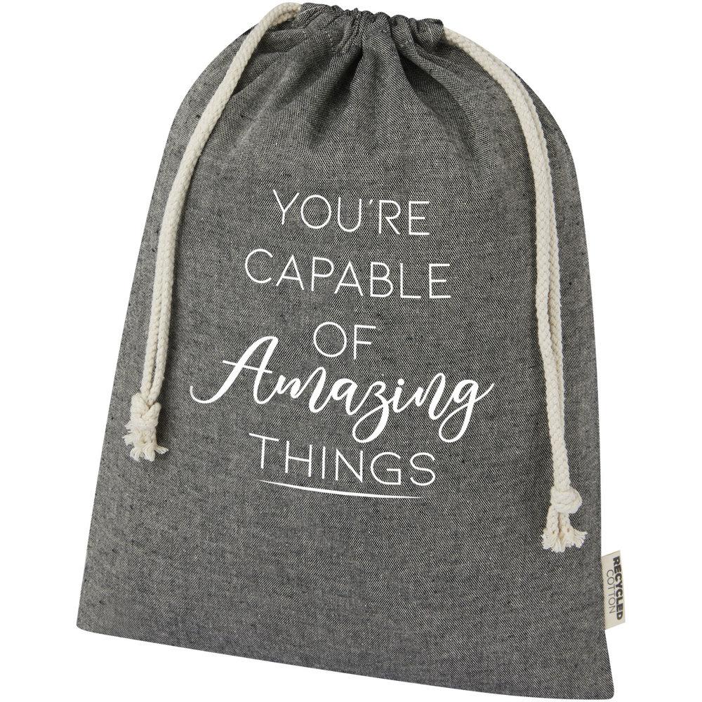 Elevate your brand with the Pheebs 150 g/m² GRS certified recycled cotton gift bag, a spacious 4L large size (30 x 42 cm) perfect for promotional giveaways, event swag, or client appreciation gifts. Crafted from sustainable recycled cotton with a sturdy cotton drawstring closure, this eco-friendly bag showcases your commitment to the environment while offering practical versatility for storing or carrying items.