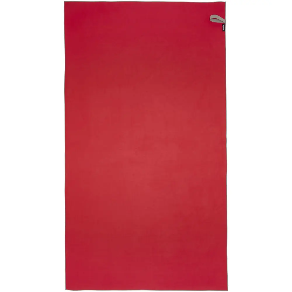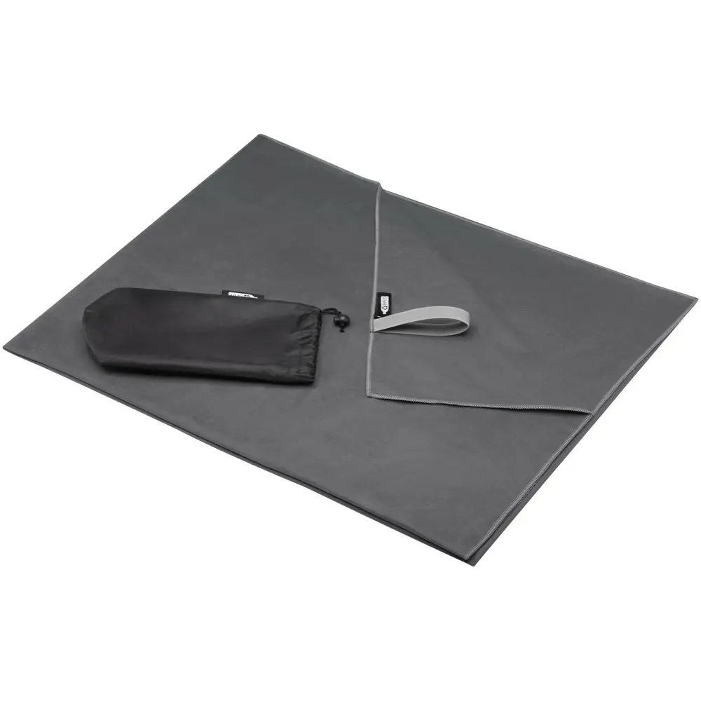 Elevate your brand with the Pieter GRS ultra lightweight and quick dry towel, perfect for promotional giveaways at events or gyms. This 180 x 100 cm towel, crafted from 90% GRS recycled polyester and 10% nylon (200 g/m²), offers superior absorbency, rapid drying, and exceptional softness for ultimate comfort during workouts, swims, or outdoor adventures.