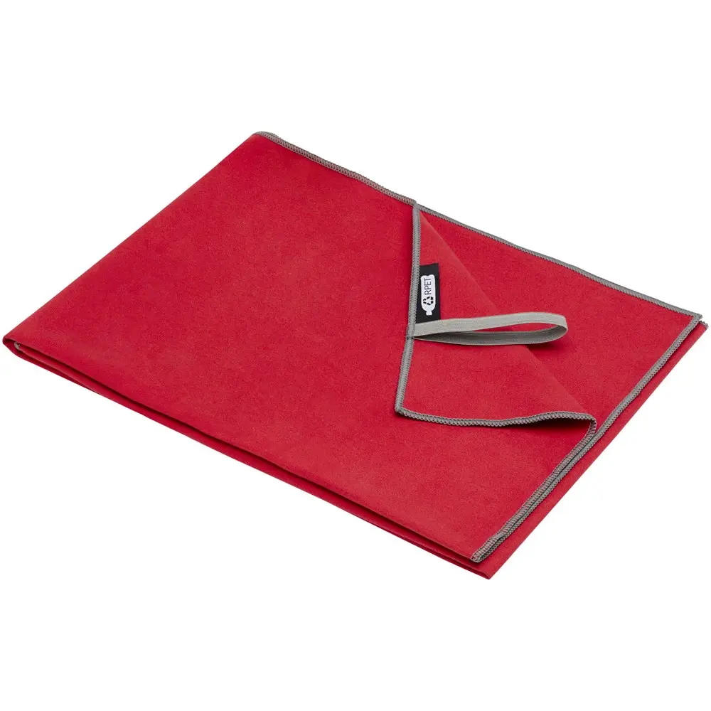 Made with recycled materials and GRS certified, this towel supports your brand's commitment to environmental responsibility. The included storage pouch, fashioned from recycled PET plastic and measuring 17 x 13 cm, offers a prime surface for custom logo printing to boost visibility at events.