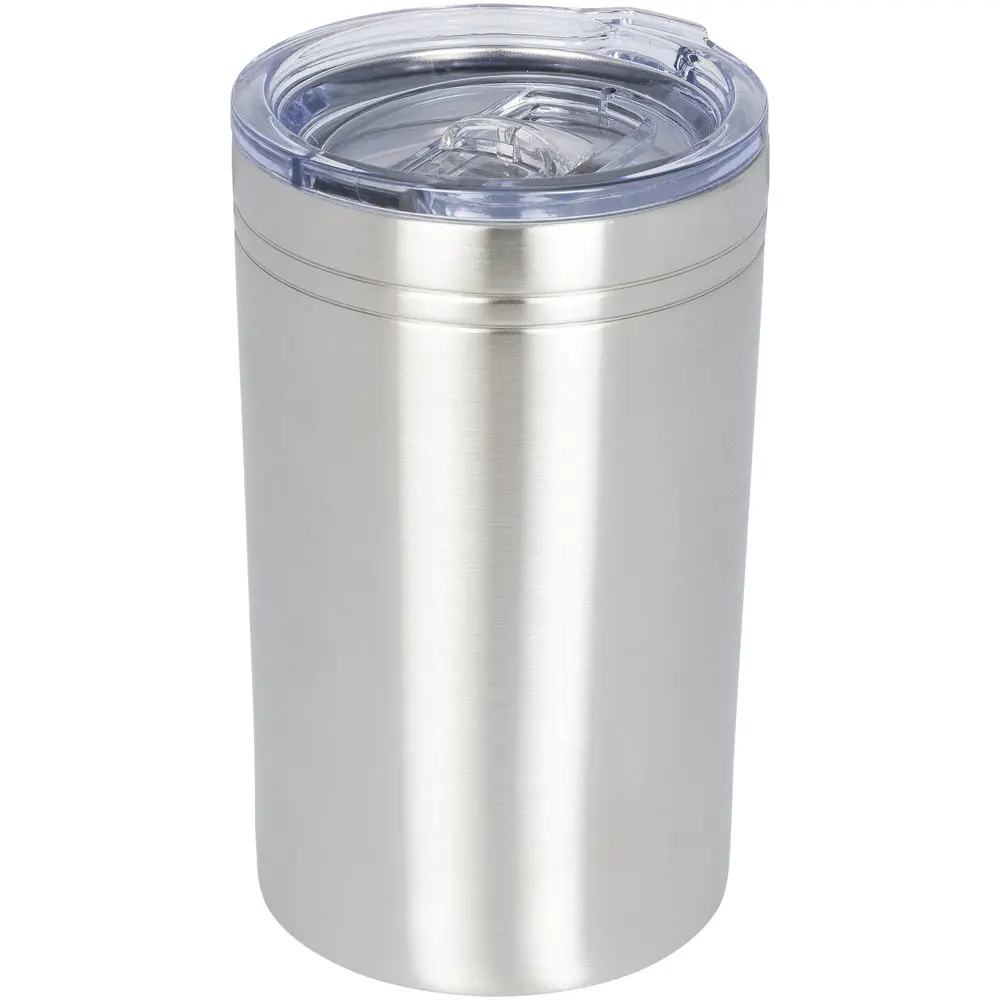 Crafted for convenience, this 330 ml tumbler features a clear press-on lid with slide closure for spill-free use, doubling as a reliable drink insulator. At 13.5 x ø8.5 cm, it's compact and portable, perfect for giveaways at corporate events or client appreciation campaigns.