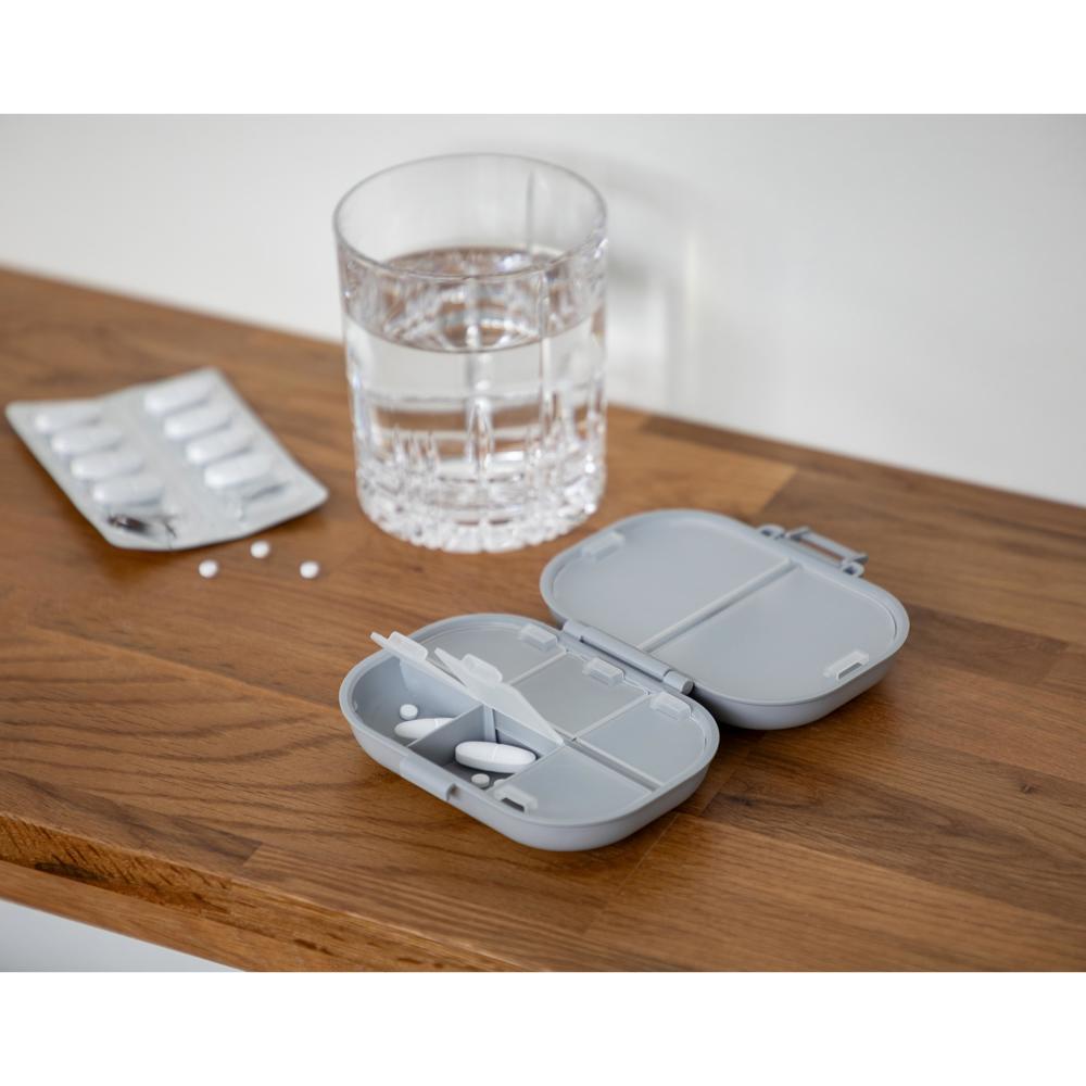 Elevate your brand visibility with the Pillbox "Medi", a premium promotional pill organizer customized with your logo. Featuring two spacious compartments for daily essentials and six smaller ones at the bottom for precise organization, this practical giveaway ensures recipients manage medications effortlessly.