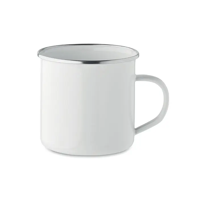 Elevate your promotional giveaways with this durable metal mug featuring a classic vintage design and enamel coating. Perfect for businesses seeking high-impact, personalized items.
