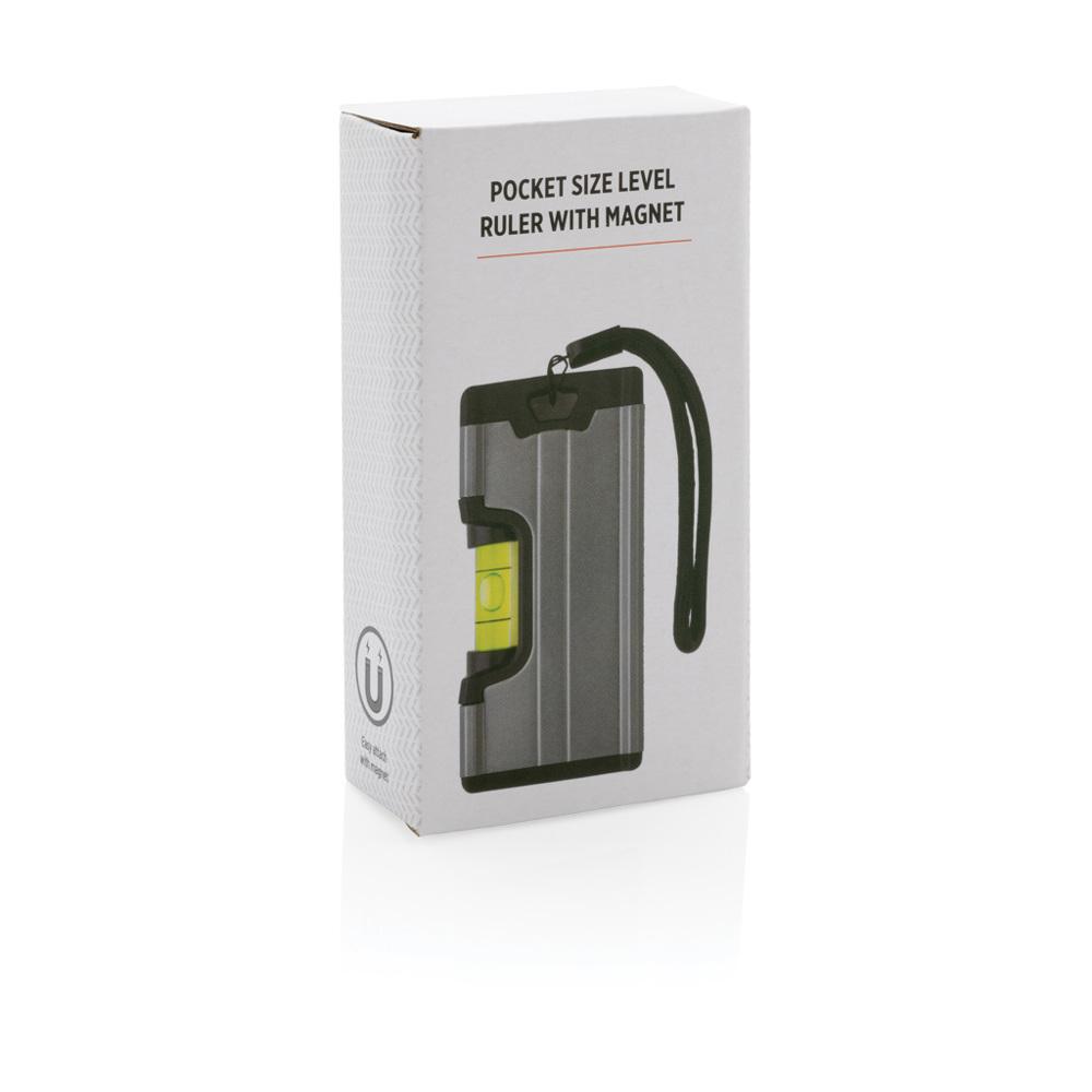 Elevate your brand visibility with this compact 10 cm pocket-sized aluminum level ruler, perfect for customization with your logo. Its powerful magnetic base securely attaches to metal surfaces for hands-free use on job sites or during events, ensuring precision measuring with 0.5 mm accuracy.