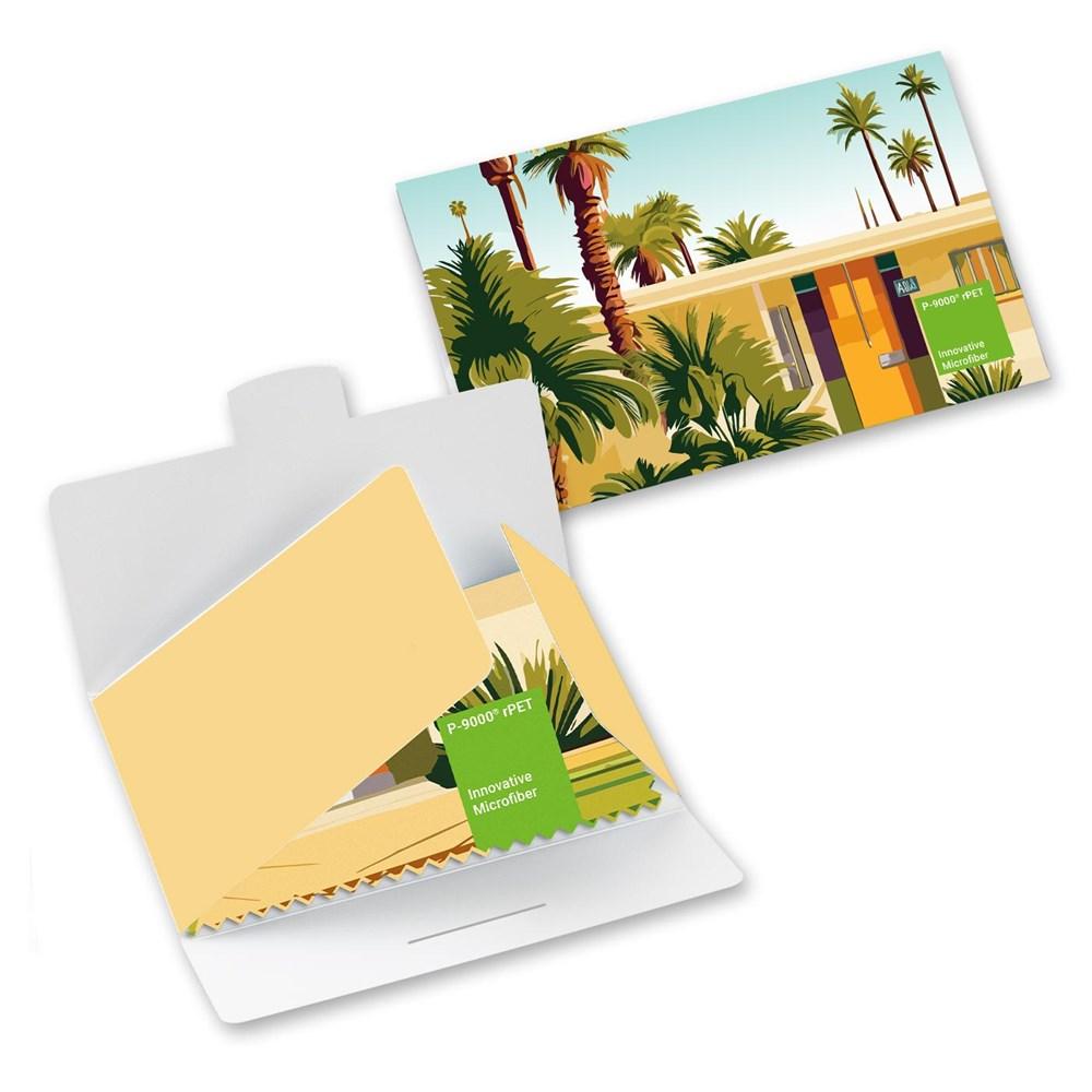 Say goodbye to smudges and fingerprints with our high-quality rPET microfiber glasses cloths. Crafted from P-9000® Microfiber (70% recycled polyester, 30% polyamide), these 250g/m² cloths clean lenses, optics, cameras, and displays quickly and thoroughly—without any cleaning agents. Ideal for promotional giveaways, they offer ample space for your logo, motif, or design on the cloth itself, plus extra advertising on the paper case packaging.
