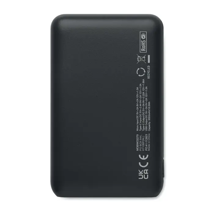 Elevate your promotional giveaways with our customizable 5000 mAh power bank, crafted from recycled ABS plastic. Ideal for marketing teams and event organizers, this compact device charges smartphones on the go, ensuring your brand stays visible during client interactions or corporate events.