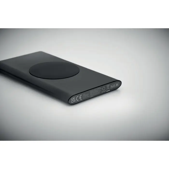 Elevate your brand with the POWERPLUS 5000mAh 15W Power Bank, a sleek wireless charger crafted from recycled aluminum for eco-conscious promotion. This compact device supports fast 15W wireless charging, plus wired options via Type-C input and dual outputs (Type-C and Type-A), ensuring devices stay powered during events or daily use.