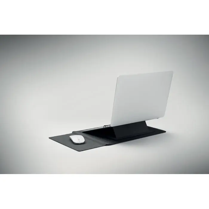 Elevate your brand with the PRACTIC 16-inch felt laptop sleeve, a versatile 3-in-1 solution crafted from sustainable RPET material. This innovative design unfolds into a sturdy laptop stand for ergonomic viewing during presentations and doubles as a smooth mouse pad for seamless productivity on the go.
