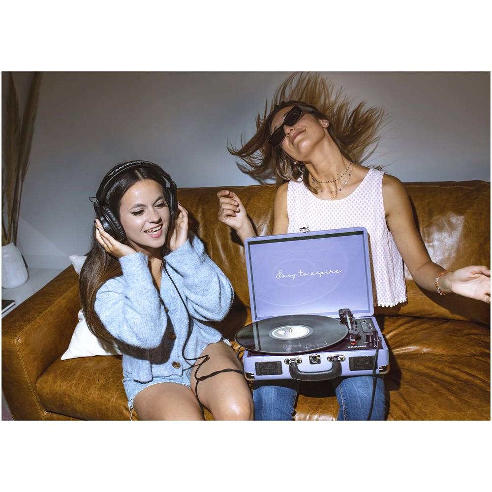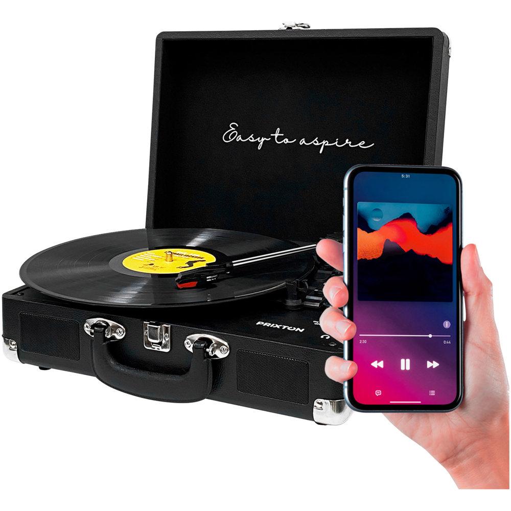 Elevate your brand with the Prixton VC400 vinyl MP3 player, a portable briefcase-shaped marvel perfect for personalised promotional gifts. This versatile device combines nostalgic vinyl playback with modern connectivity, including Bluetooth for seamless smartphone pairing, USB and TF slots for digitising records in WAV format, FM radio, and RCA/headphone outputs.