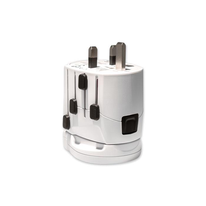 Elevate your brand visibility with the PRO World & USB 3-pole universal travel adapter, the ultimate customizable giveaway for marketing professionals and event organizers. This compact Schuko-compatible plug adapts seamlessly to outlets worldwide, featuring a powerful 12W USB Type-A port to charge laptops, hairdryers, and other high-demand devices on the go.