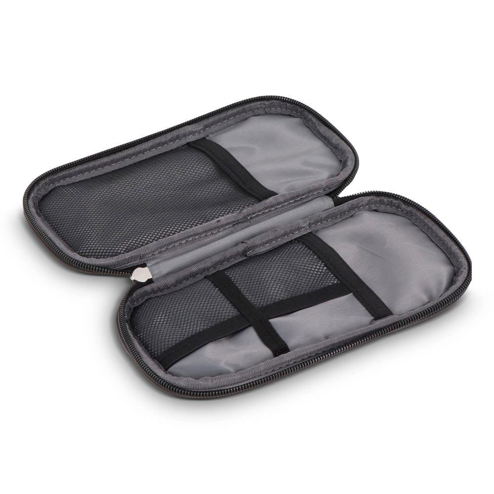 Elevate your brand with this PU-coated rPET 210D organizer bag, measuring 20 x 11.5 x 2 cm. Designed for tech essentials, it features a convenient wrist strap for effortless portability and four interior pockets—two large and two small—to keep cables, chargers, powerbanks, and accessories neatly organized.