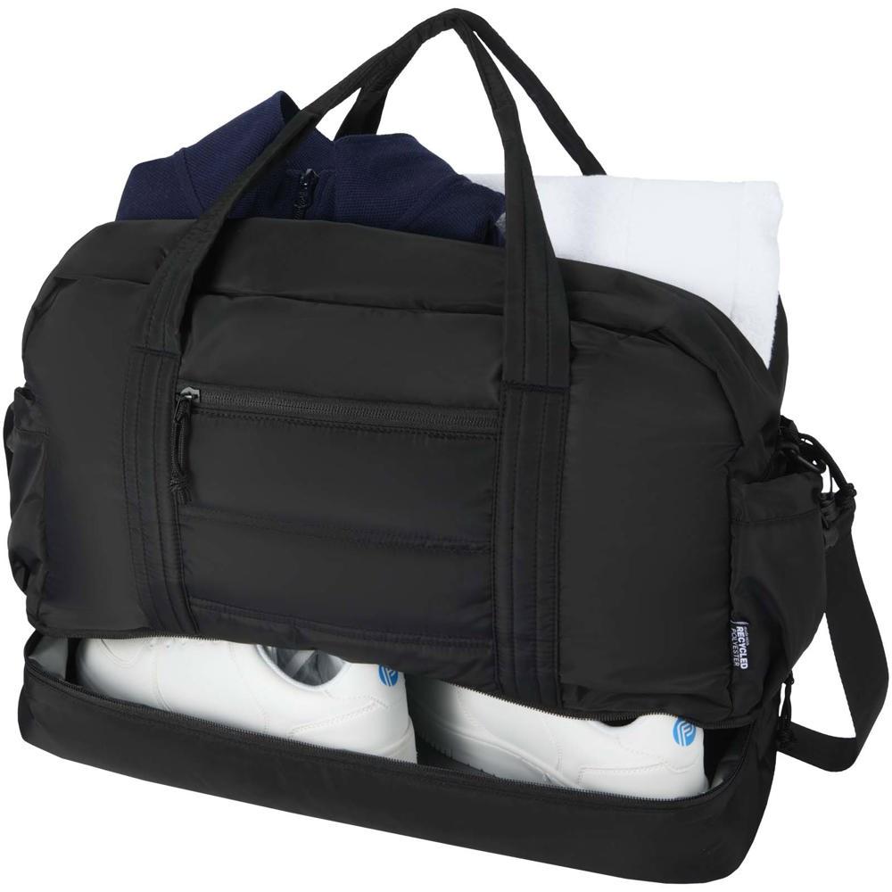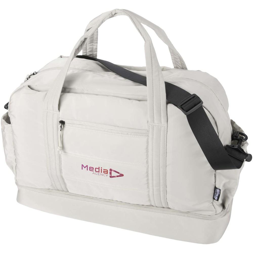 Elevate your brand with the Puffer GRS recycled duffel bag with insulated bottom 30L, a premium promotional giveaway crafted from sustainable GRS certified recycled materials. Ideal for marketing professionals and event organizers, this customizable duffel bag features your company logo for maximum visibility, making it a standout choice for client appreciation, trade shows, or corporate events.