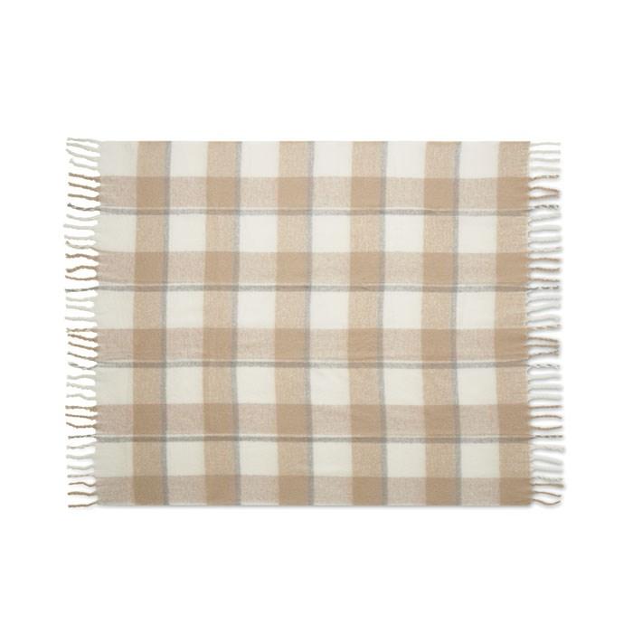 Elevate your brand with the QUET Chequered mohair blanket, a premium RPET polyester throw featuring a stylish chequered design and luxurious mohair feel. Hand-rolled fringes add a touch of elegance, making it ideal for promotional giveaways.
