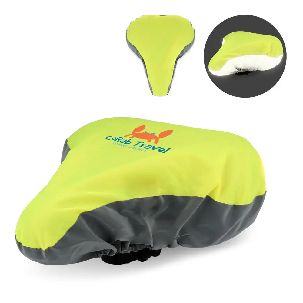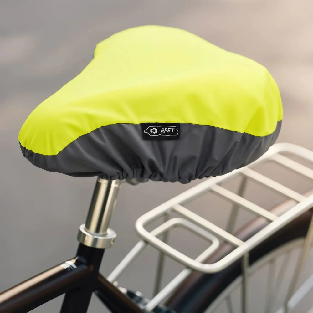 Enhance your brand visibility and promote sustainability with our reflective saddle cover, crafted from recycled PET material. This eco-friendly accessory features a highly visible reflective section for safety in low-light conditions, making it ideal for cyclists during commutes or events.