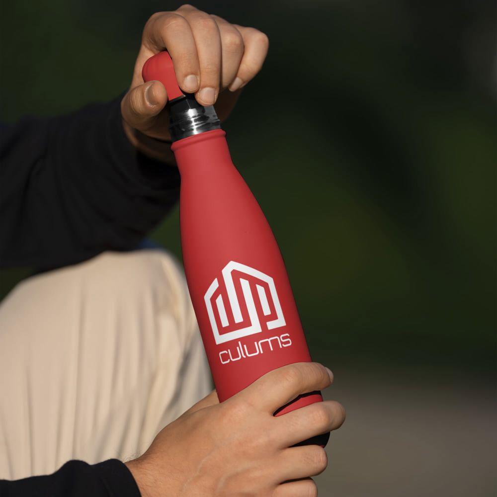 Elevate your promotional giveaways with our customizable recycled stainless steel swing bottle. Featuring a premium soft touch finish for a luxurious feel, this 500ml double-walled vacuum insulated bottle maintains beverages cold or hot for hours. Leakproof design ensures mess-free use on the go, making it perfect for events, client appreciation, or marketing campaigns.