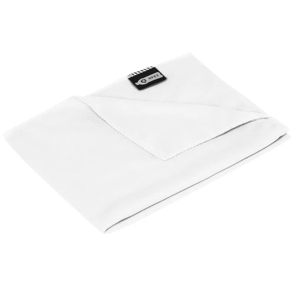 Enhance your brand visibility with this sustainable cooling towel, perfect for marketing campaigns and corporate giveaways. Crafted from recycled PET, it offers quick absorption and rapid drying to keep recipients cool during workouts, outdoor activities, or busy event days. Measuring 80 x 30 cm, the towel provides ample coverage while remaining lightweight and washable for repeated use.
