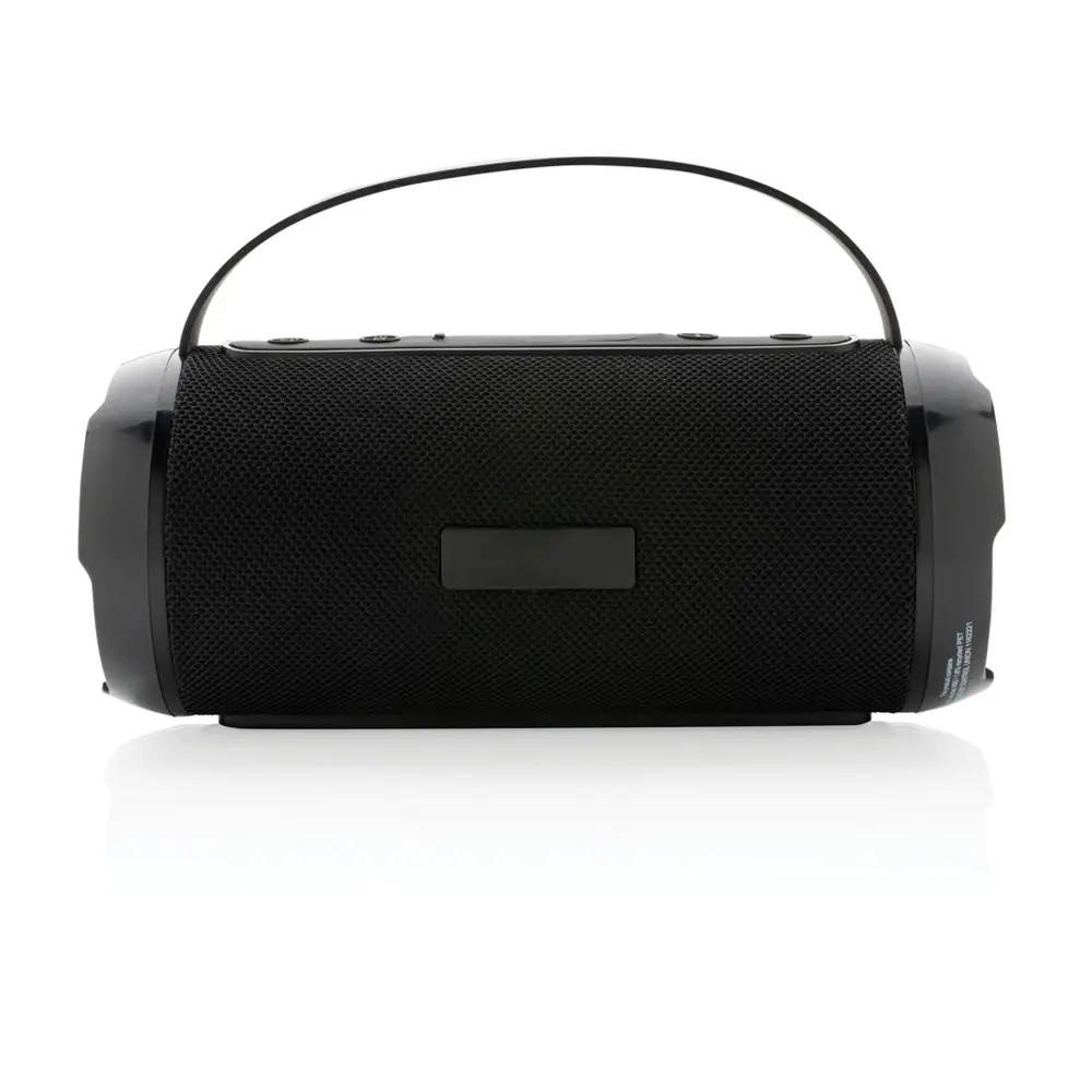 Built to withstand the elements, the speaker features IPX4 waterproofing, making it perfect for outdoor activities like picnics, BBQs, beach outings, or pool parties. Its robust construction from recycled materials offers longevity without compromising on environmental impact, providing a reliable giveaway that recipients will use repeatedly—keeping your brand visible long after the event.