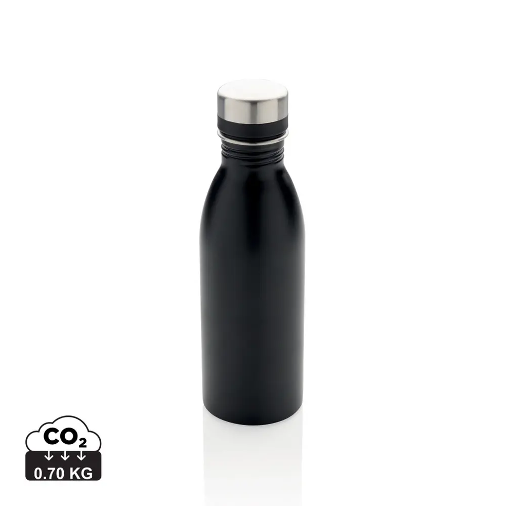 Elevate your brand's visibility with the Deluxe recycled stainless steel bottle, an eco-friendly promotional essential for marketing professionals and event organizers. This lightweight, 500ml reusable bottle is crafted from durable 18/8 recycled stainless steel, featuring 80% recycled content certified by RCS for a sustainable supply chain. BPA-free and fully compliant with food-safe EU directives (1935/2004/EC and 2020/1245), it's perfect for cold hydration on the go.