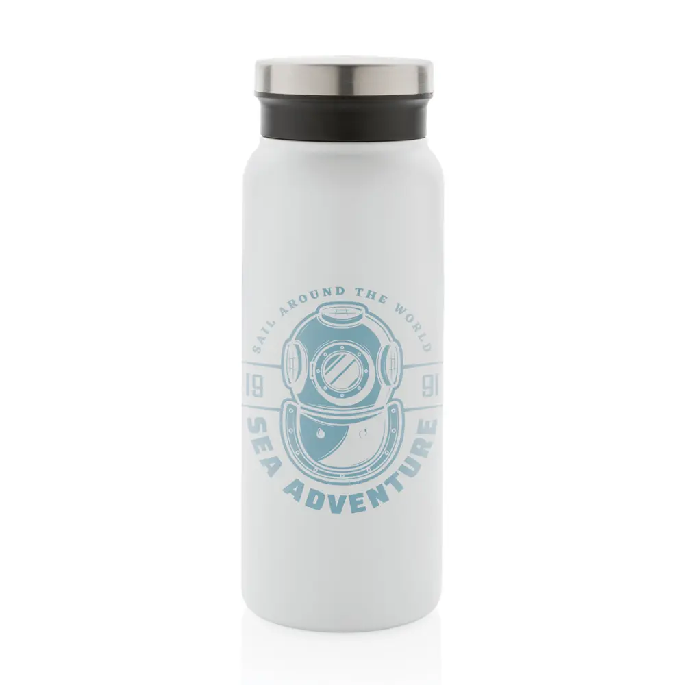 Elevate your brand's commitment to sustainability with this RCS-certified recycled stainless steel vacuum bottle. Made from 77% recycled materials, it meets the Recycled Claim Standard for a fully traceable supply chain, appealing to environmentally conscious clients and partners. Perfect for companies aiming to showcase corporate responsibility through promotional giveaways.