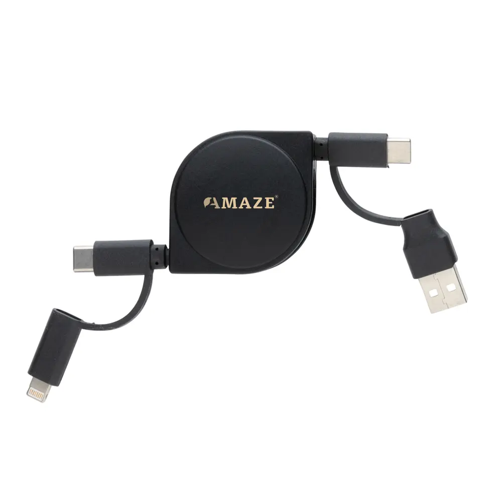 This retractable cable features five essential connectors: USB-C input, USB-A input, Type-C output, iOS output, and Micro USB output. Charge the latest smartphones, MacBooks, and other Type-C devices effortlessly, or connect to any USB-A power source for broad compatibility. Its compact, retractable design prevents tangles and fits easily into pockets or bags, making it a practical gift that recipients will use daily—keeping your logo visible and your brand top-of-mind during events or client interactions.
