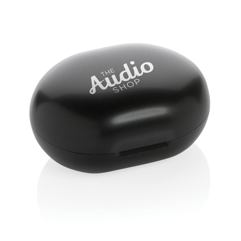 Elevate your promotional game with customizable TWS earbuds made from RCS-certified recycled ABS plastic for both earbuds and charging case, verifying sustainable recycled content across the supply chain.