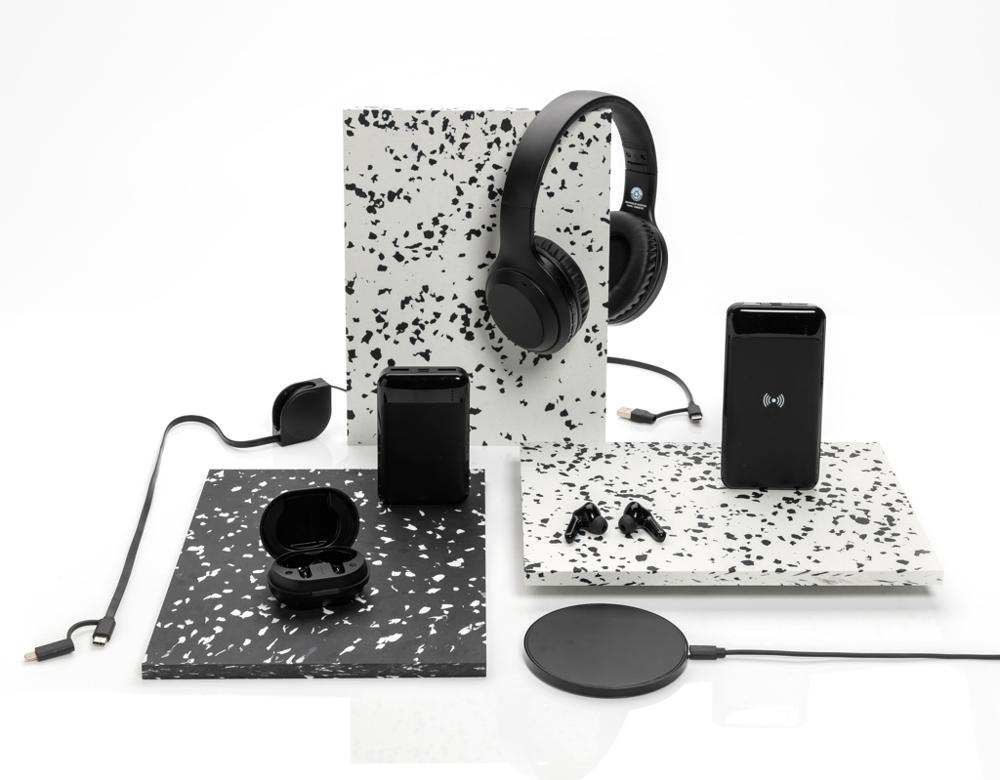 Elevate your brand with our customizable 10W wireless charger, perfect for marketing campaigns and events. Crafted from RCS-certified recycled ABS plastic for the case and recycled TPE for the cable, it boasts 58% total recycled content, verified through the Recycled Claim Standard for sustainable supply chains.