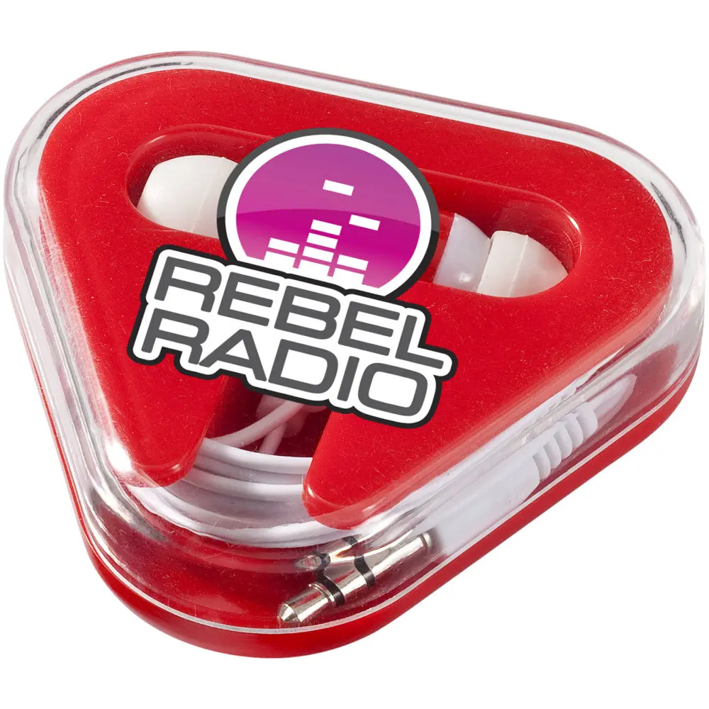 Crafted from durable ABS plastic, they withstand daily use while the included triangular plastic case with integrated cable storage ensures tangle-free portability and protection against damage. Ideal for bulk personalization, add your company logo via various printing options to boost visibility and leave a lasting impression on clients and attendees.