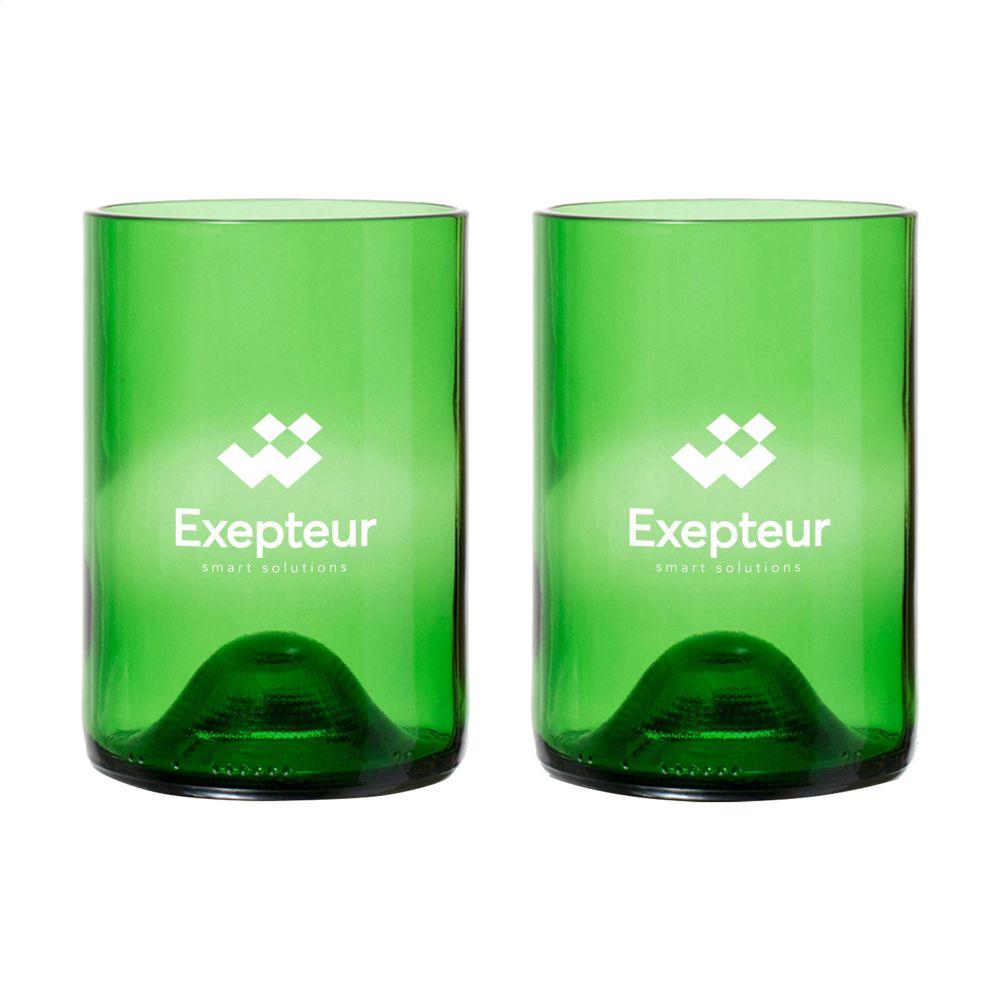Elevate your brand with the Rebottled® Tumbler 2-pack drinking glasses, crafted from upcycled wine bottles for a truly unique, eco-friendly promotional gift. Each set features distinctive tumblers that retain the recognizable shape of the original bottle, offering a smooth finish and ergonomic design that fits perfectly in the hand—ideal for water, soft drinks, or cocktails.