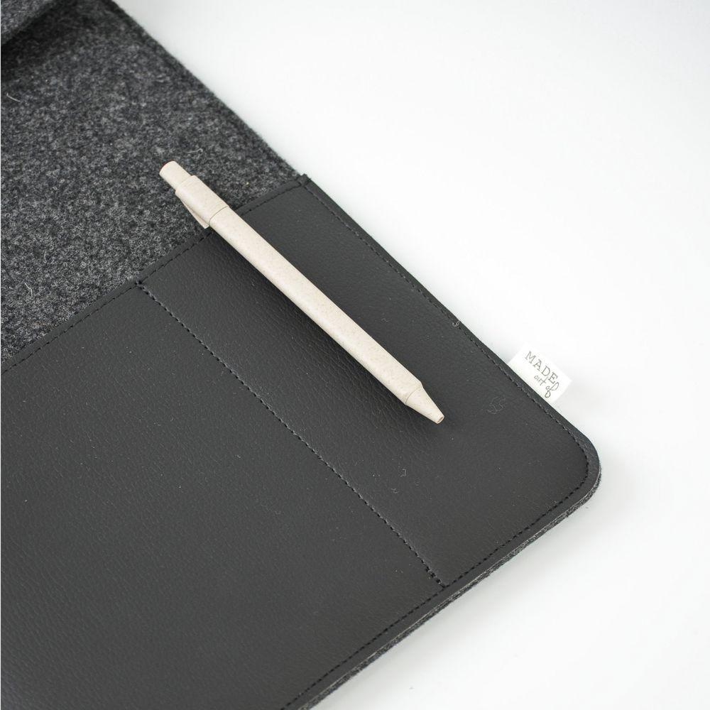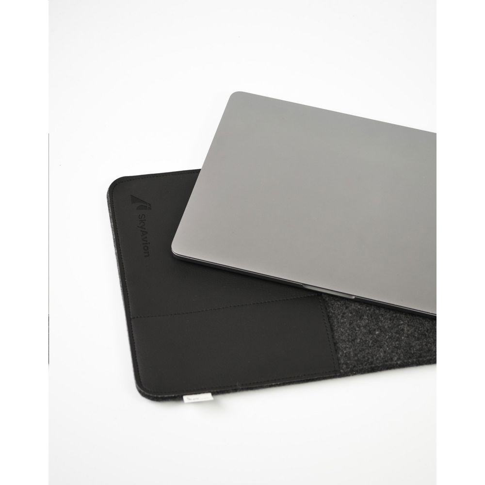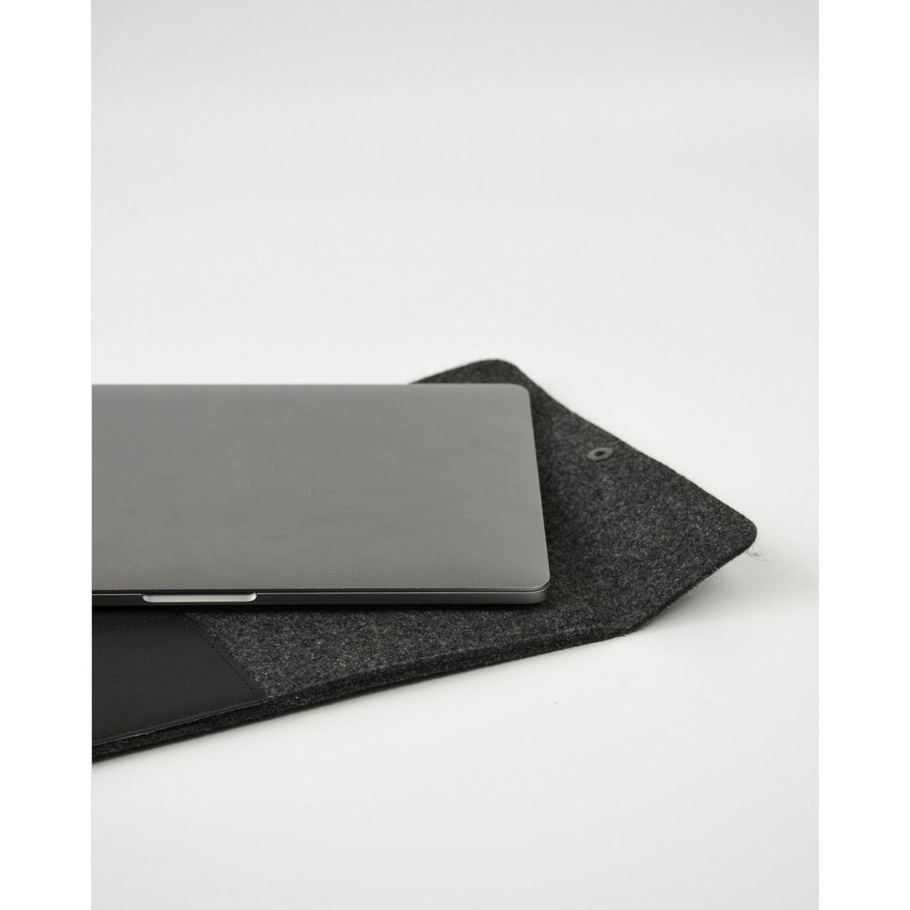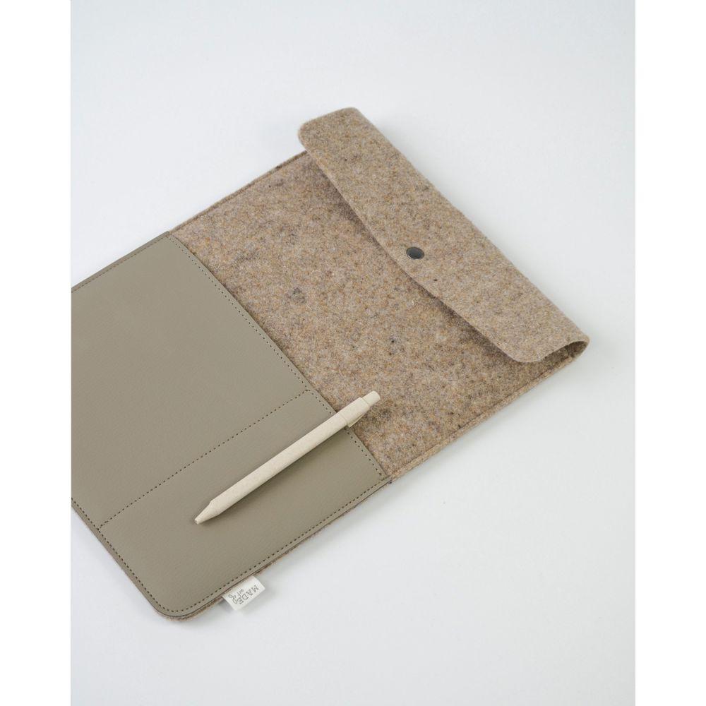 Protect your 14-inch laptop in style with this sustainable sleeve, crafted from recycled wool felt and innovative vegan leather made from recycled apple pulp. Combining 50% recycled content, 30% wool, and 20% PE in the felt, it offers eco-conscious protection while delivering a luxurious leather-like feel and premium appearance.