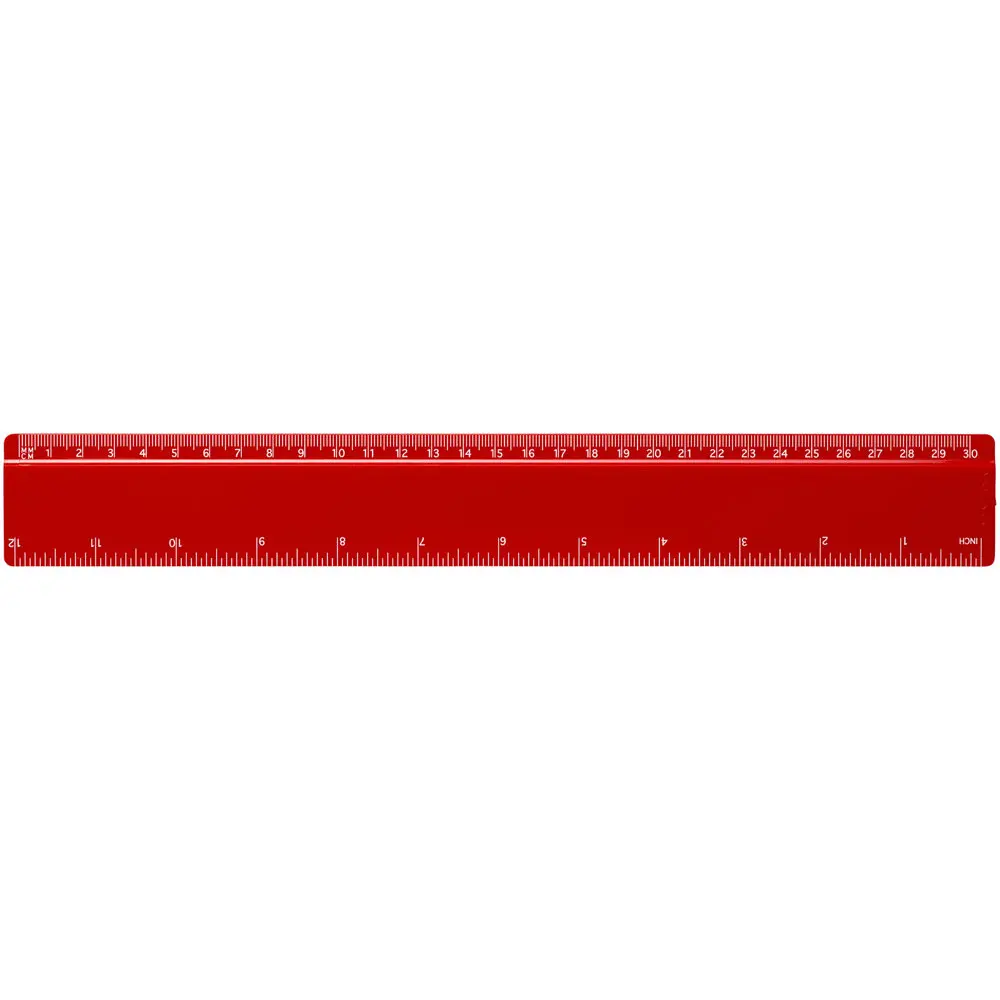 Elevate your brand with the Refari 30 cm ruler, a practical and eco-friendly promotional tool crafted from recycled HIPS plastic. Measuring 31.2 x 0.3 x 4.2 cm, this durable ruler features clear markings in both inches and centimeters, making it ideal for everyday use in offices, schools, or events.