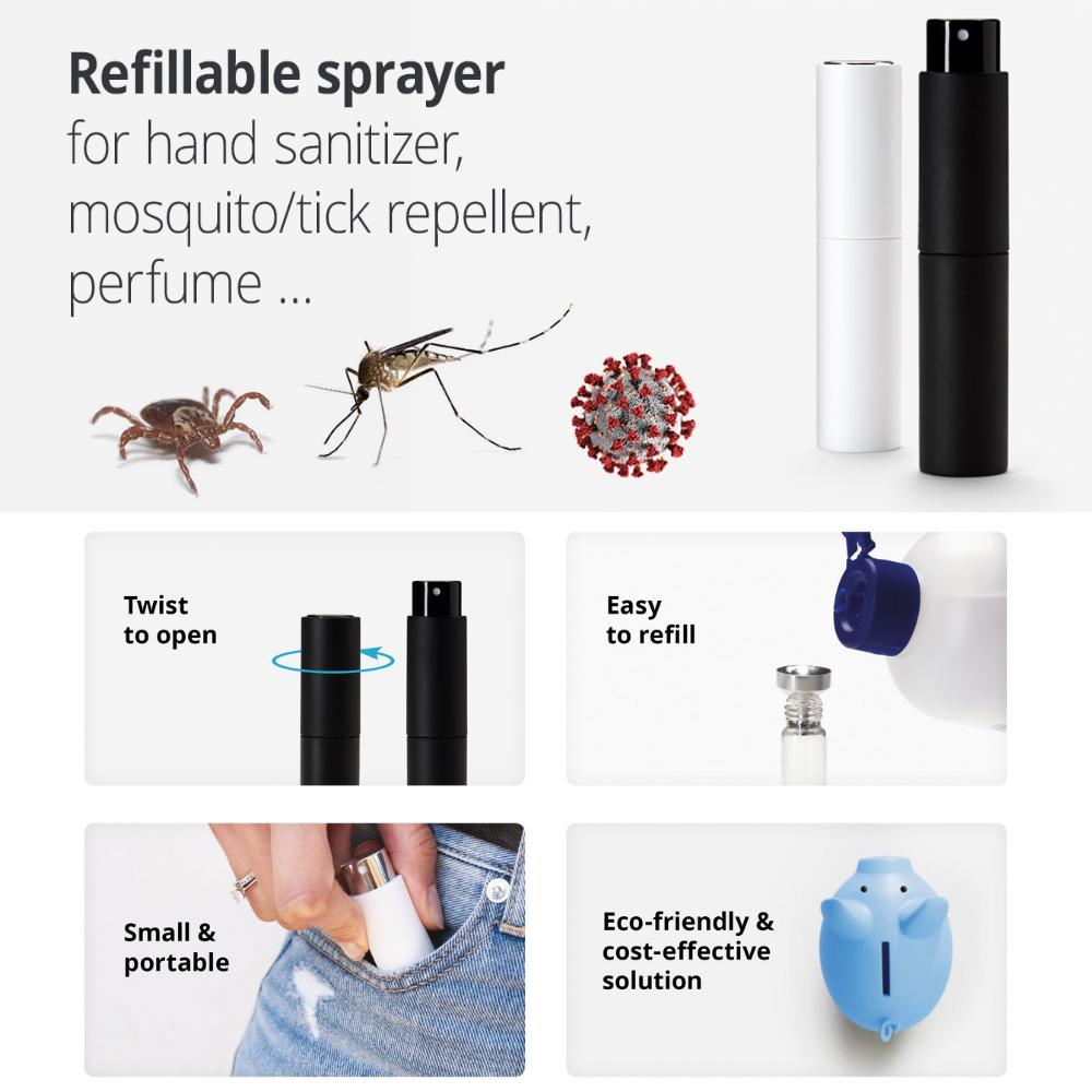 - Versatile and reliable: Leak-proof sprayer compatible with liquids like hand sanitizer, fragrances, repellents, and more.