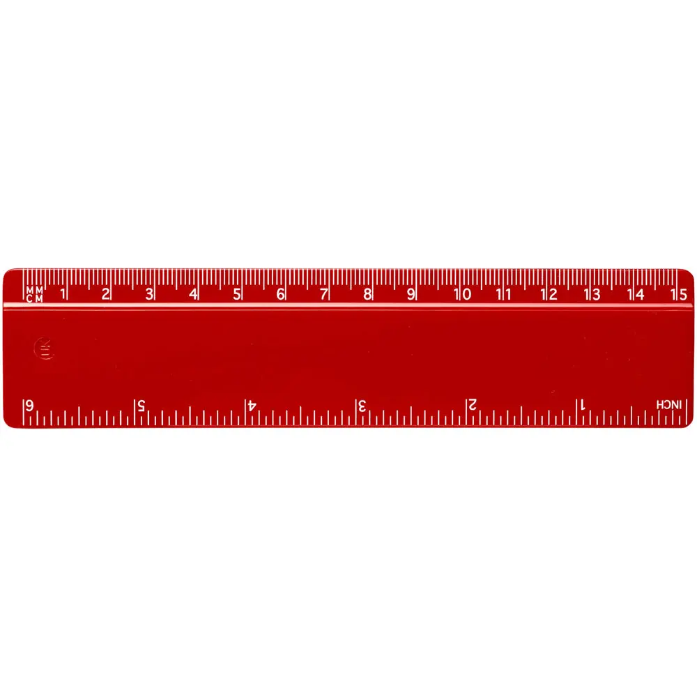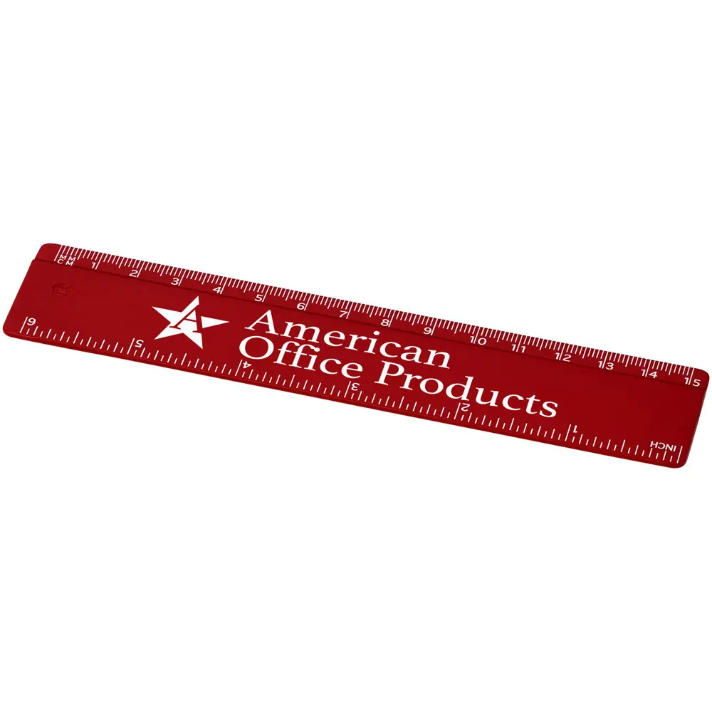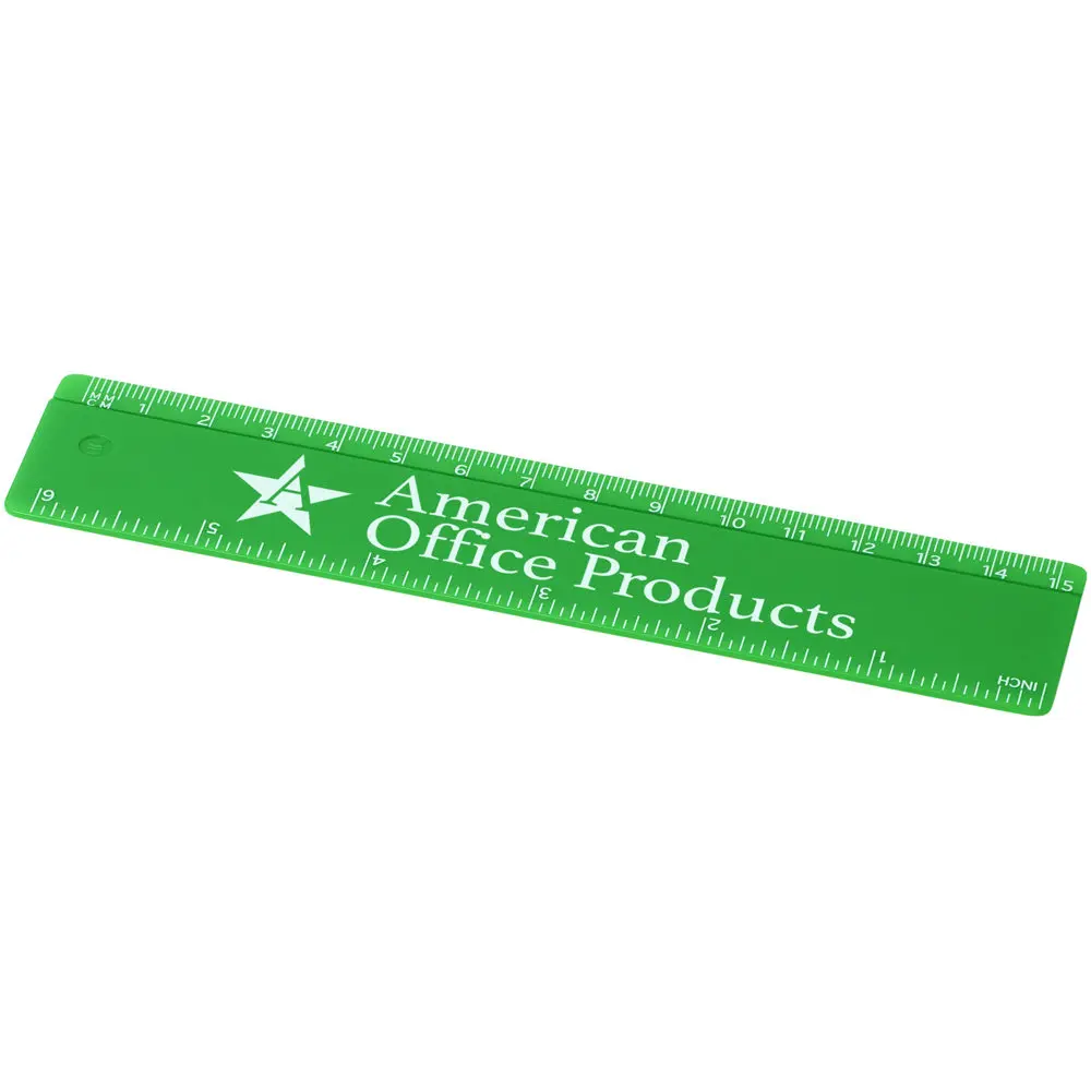 Promotional rulers are essential giveaways for branding at events and trade shows. The Renzo 15 cm ruler, crafted from durable GPPS plastic, measures 15.8 x 0.3 x 3.7 cm and features dual markings in inches and centimeters for versatile use in educational, office, or creative settings.